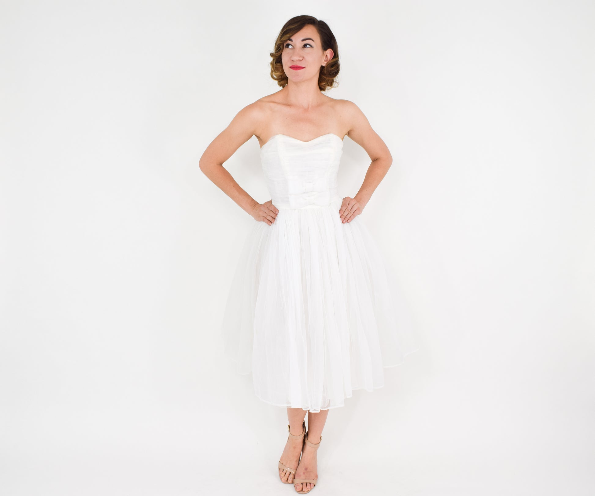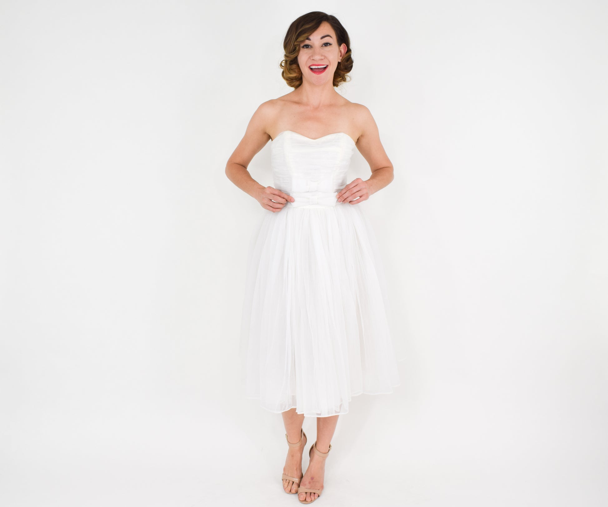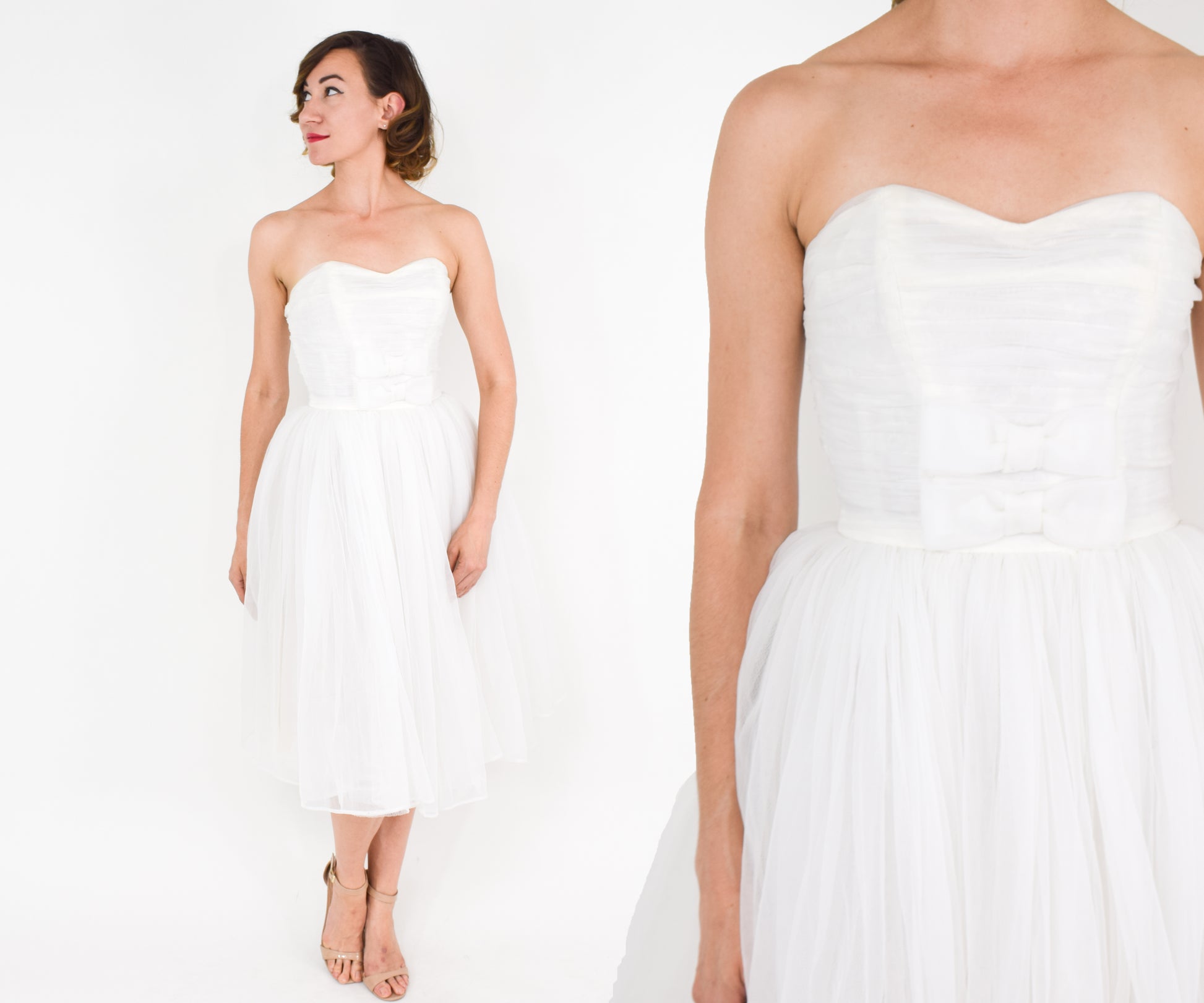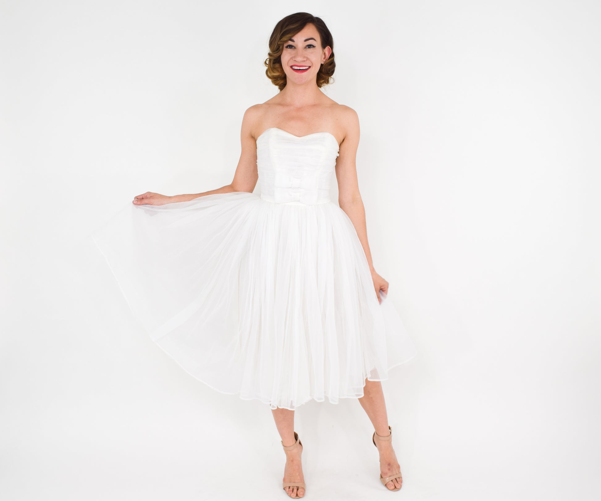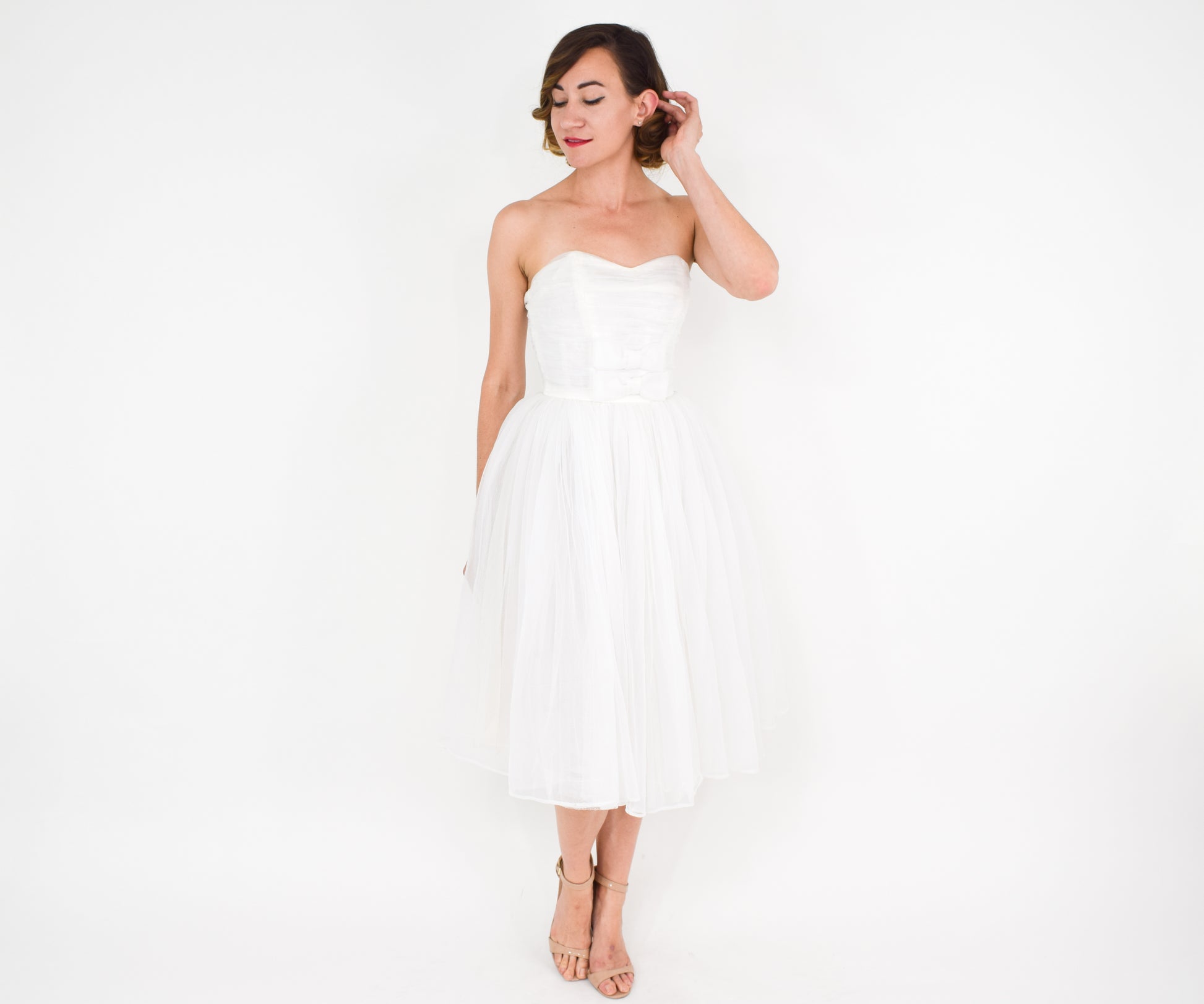 ~ Romantic white nylon tulle wedding dress from the 1950s