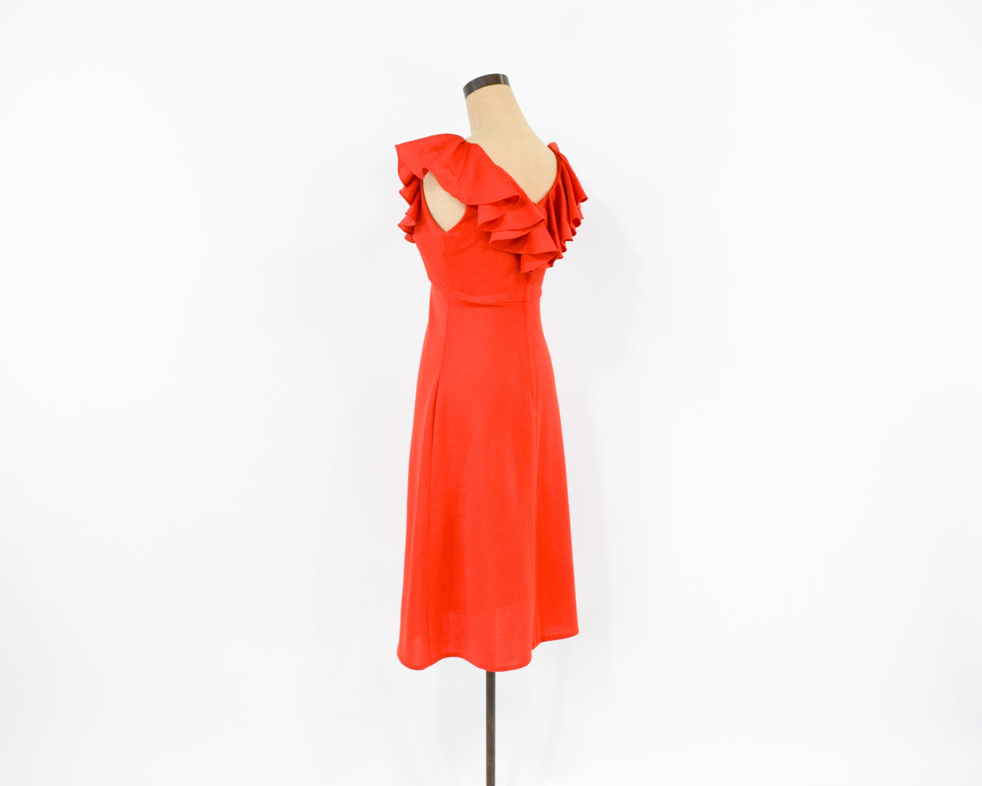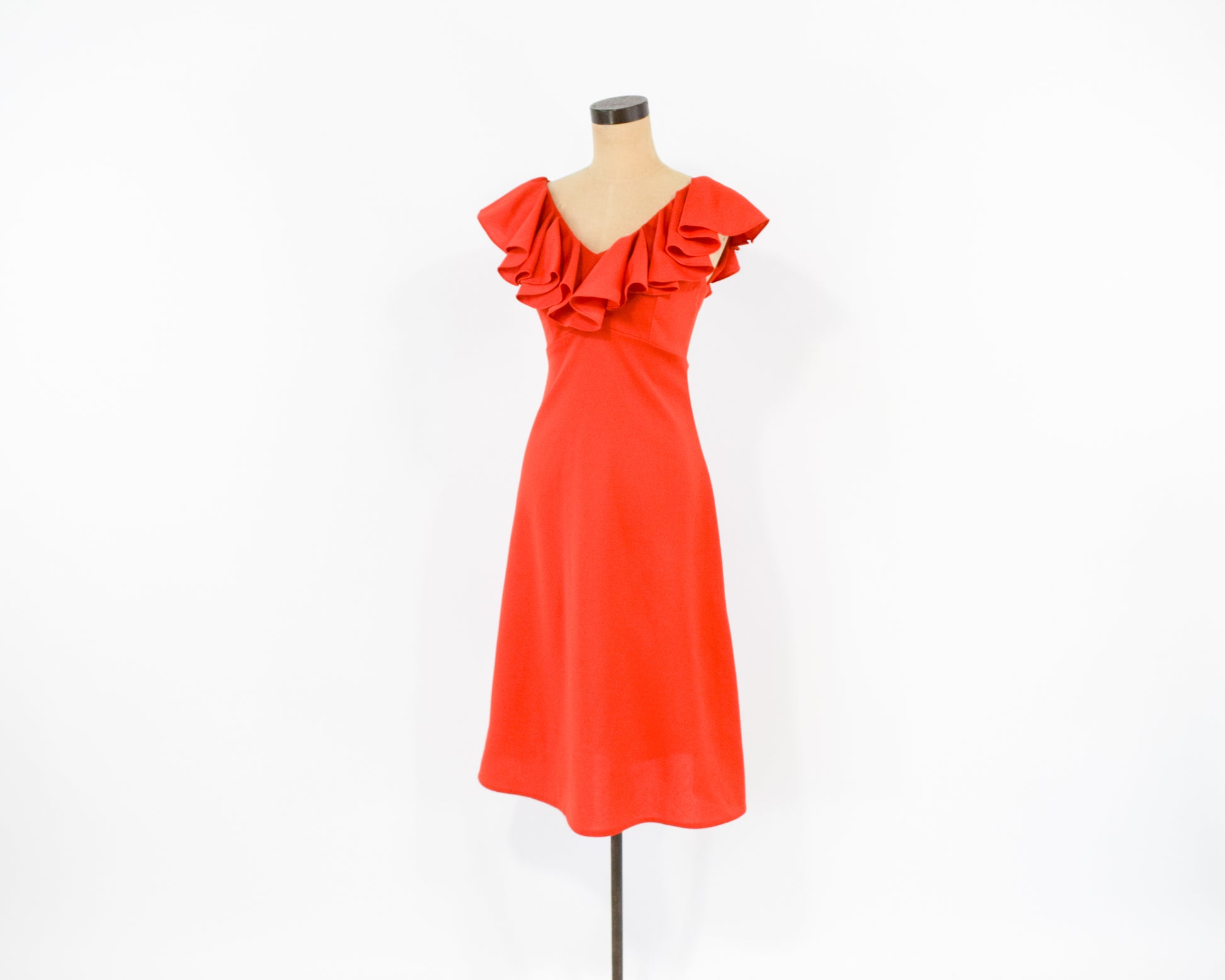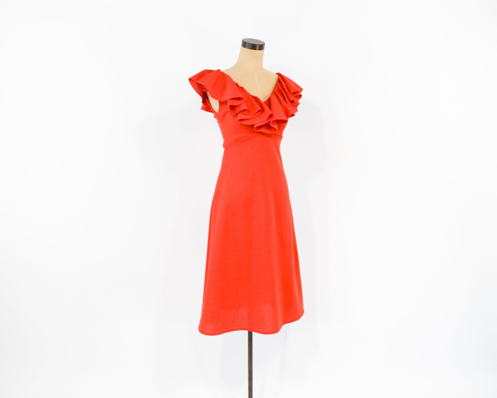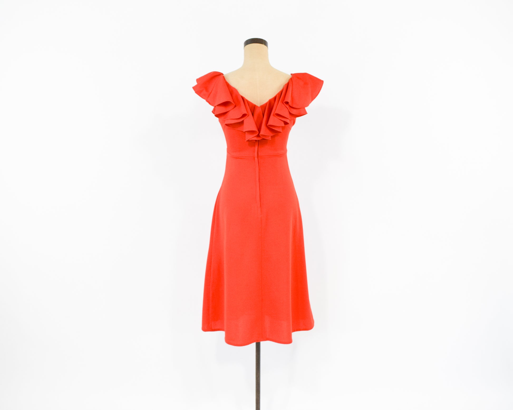 ~ Delightful orange party dress with a fun ruffle collar from the 1960s