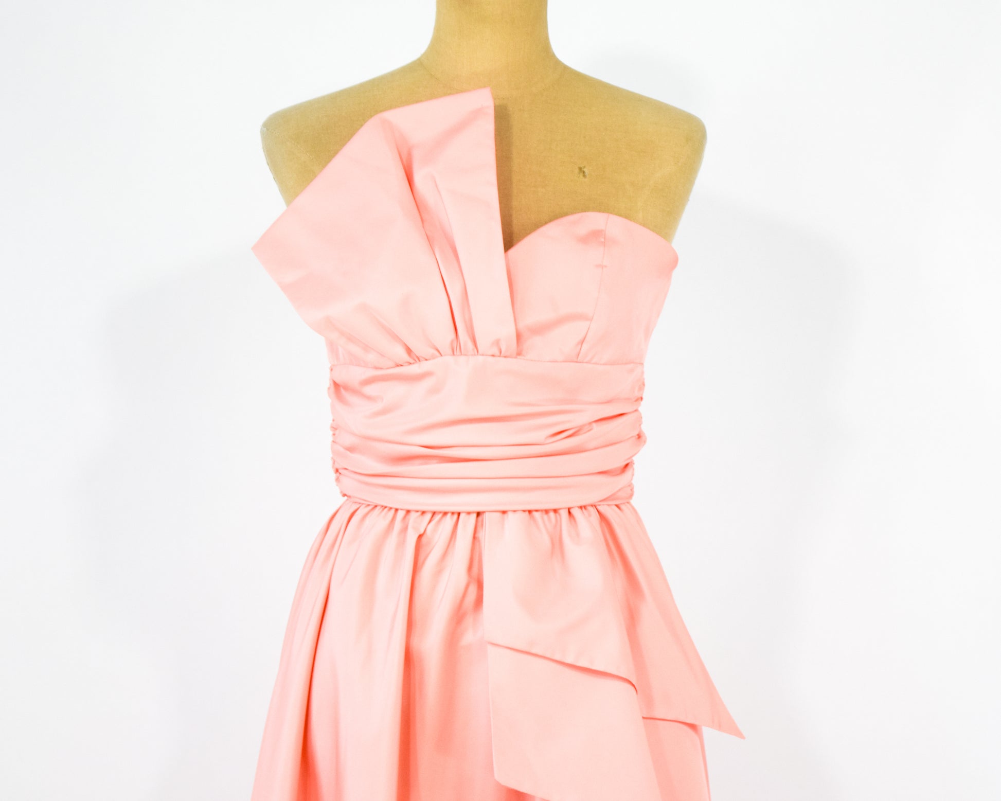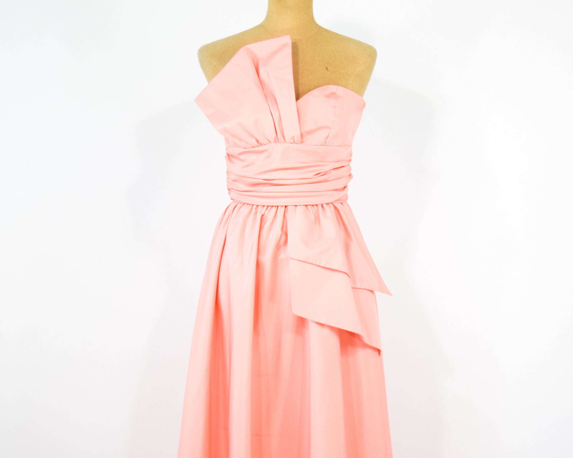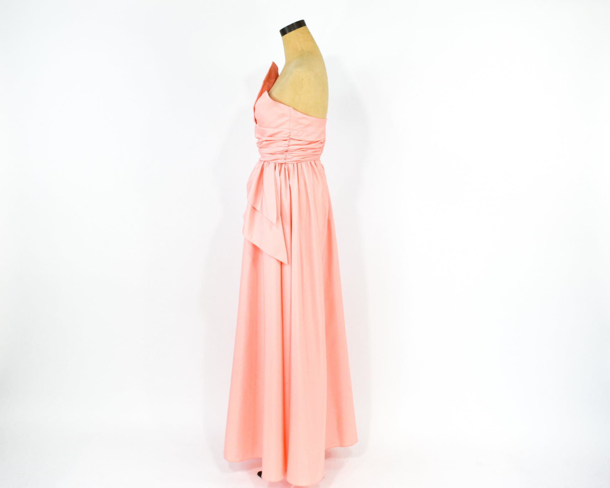 1970s Peachy Pink Strapless Prom Dress, Extra Small