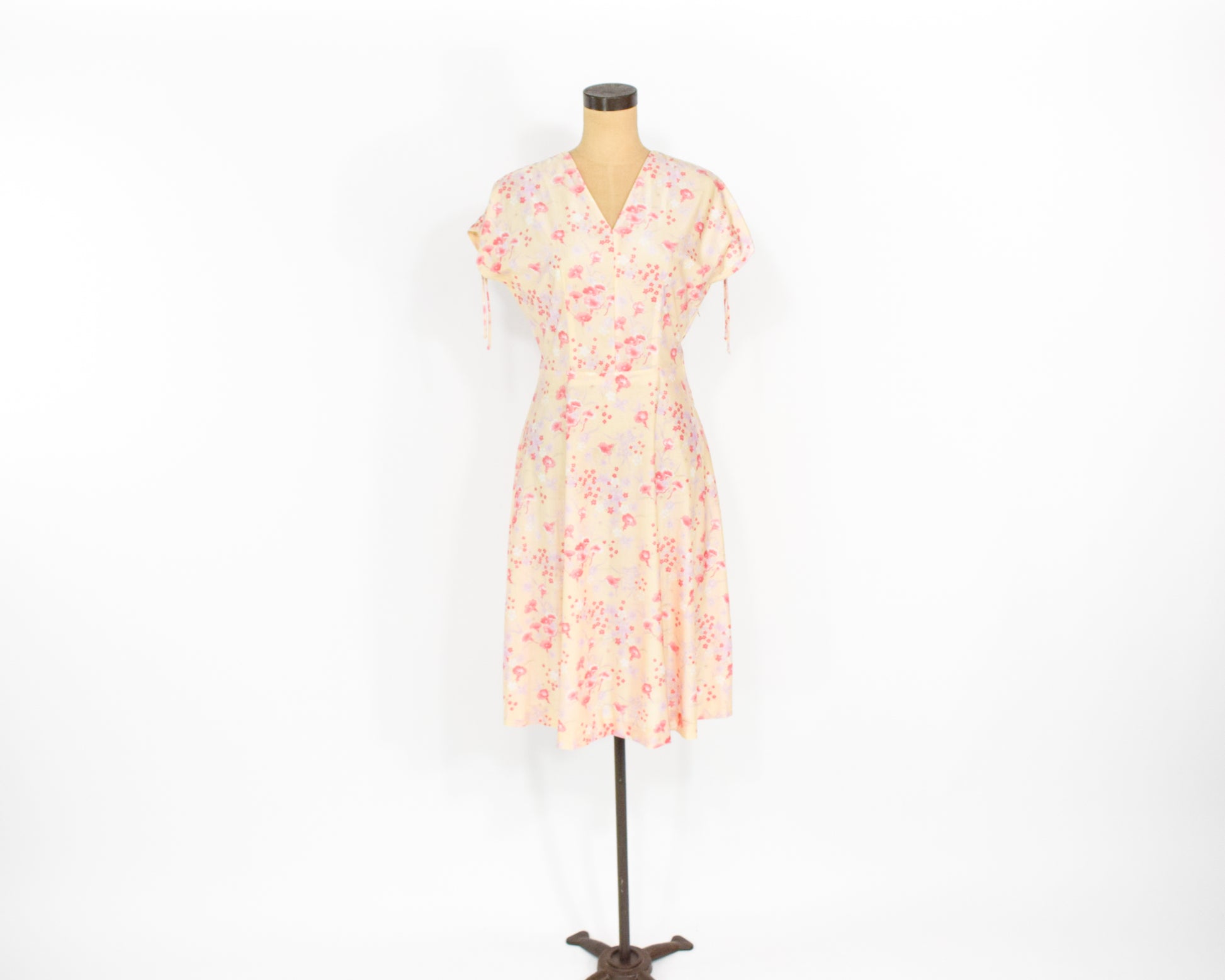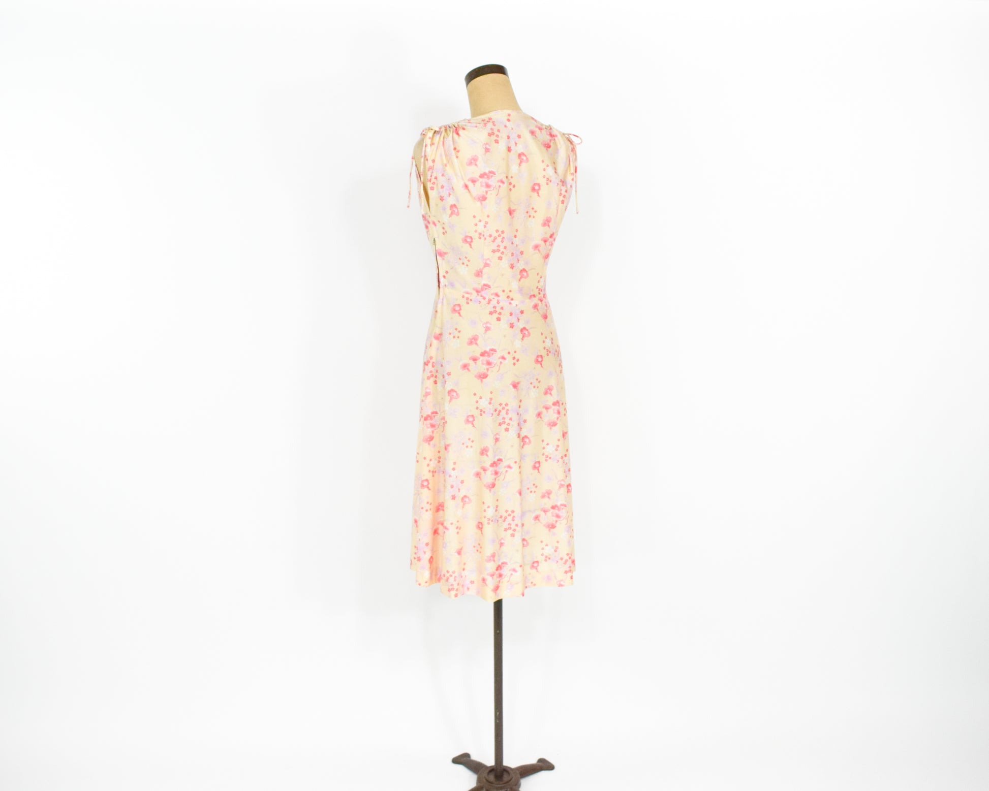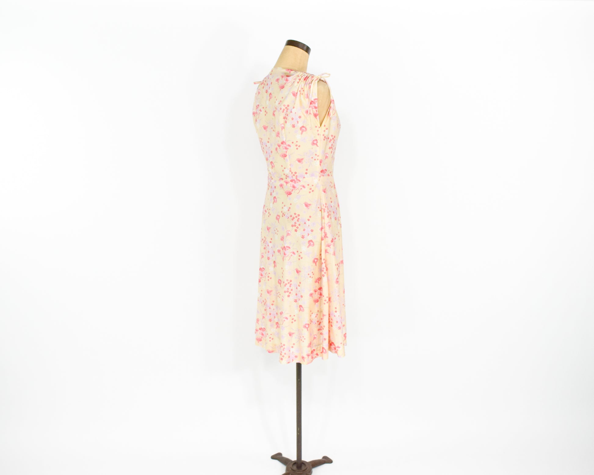 ~ Lovely yellow nylon pink floral print dress from the 1950s