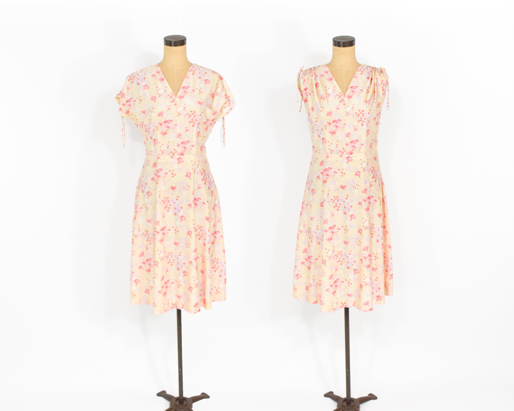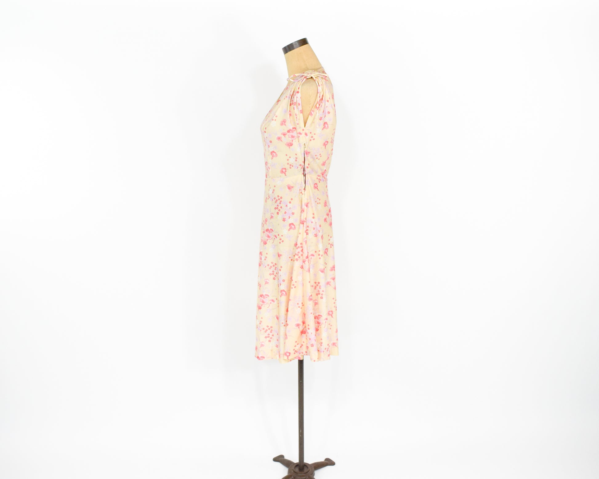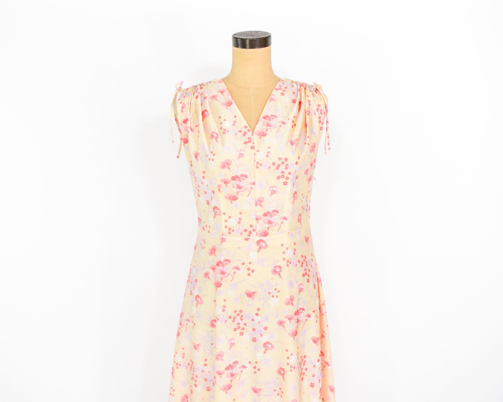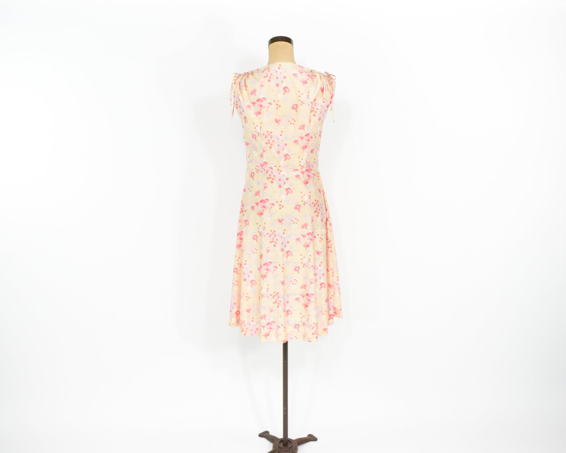 ~ Lovely yellow nylon pink floral print dress from the 1950s