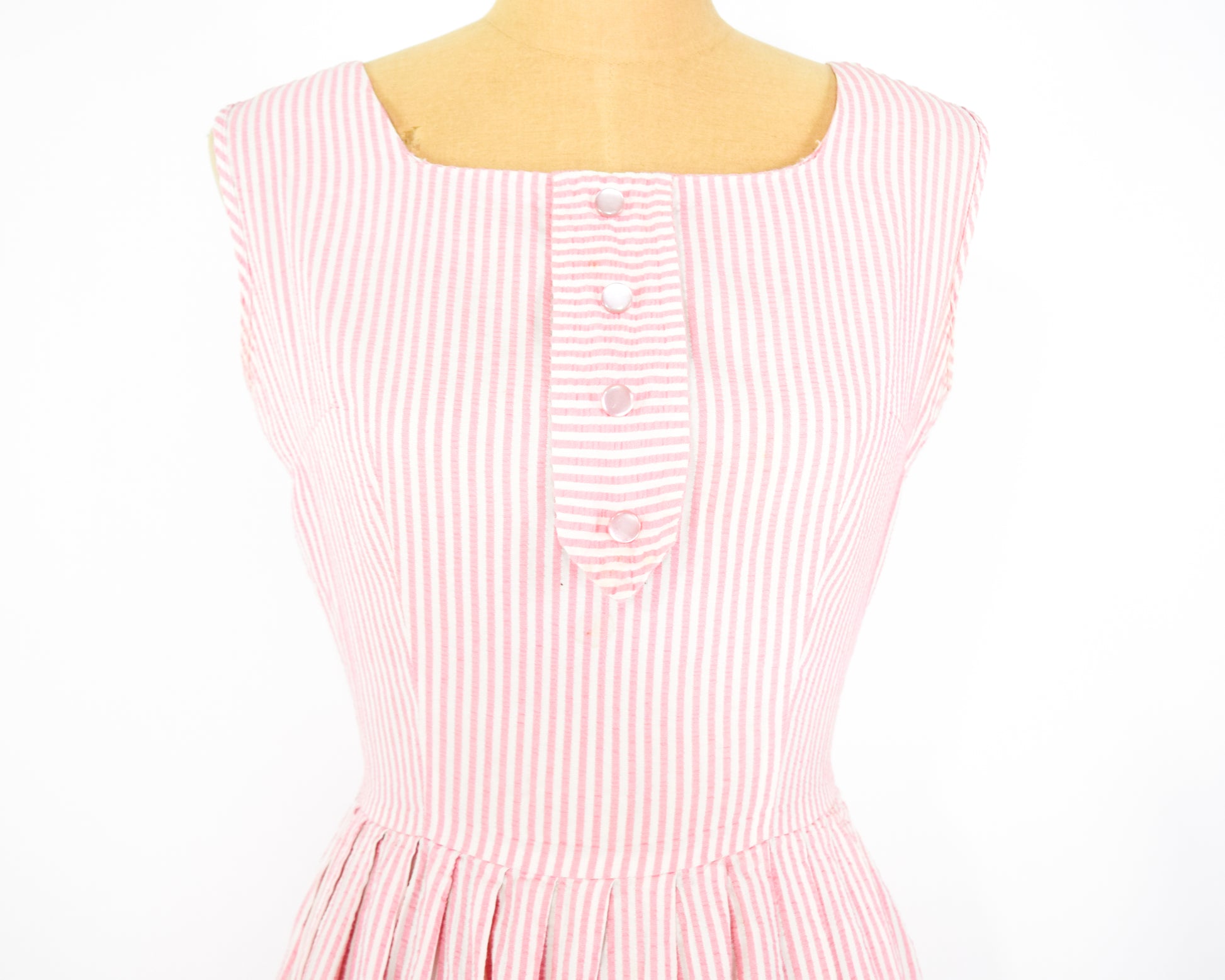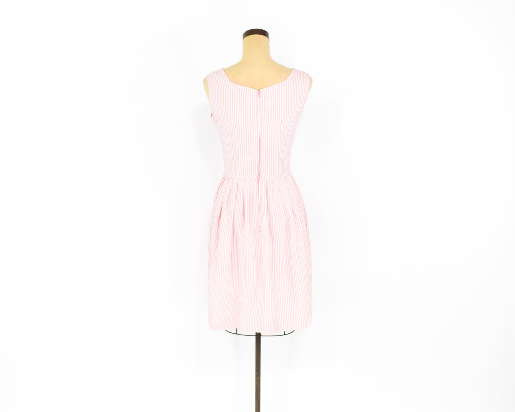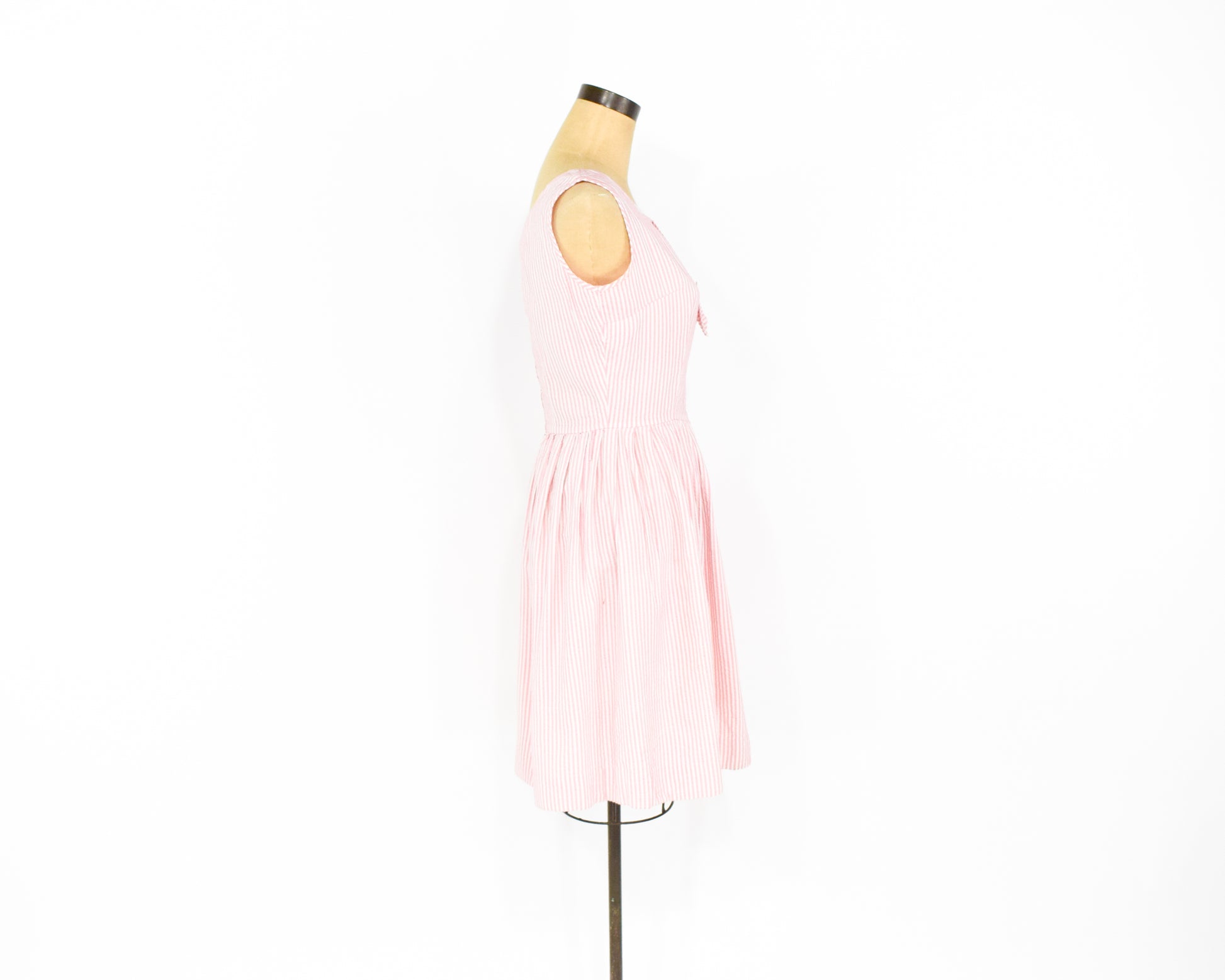 ~ Delightful pink and white seersucker striped cotton dress from the 1950s