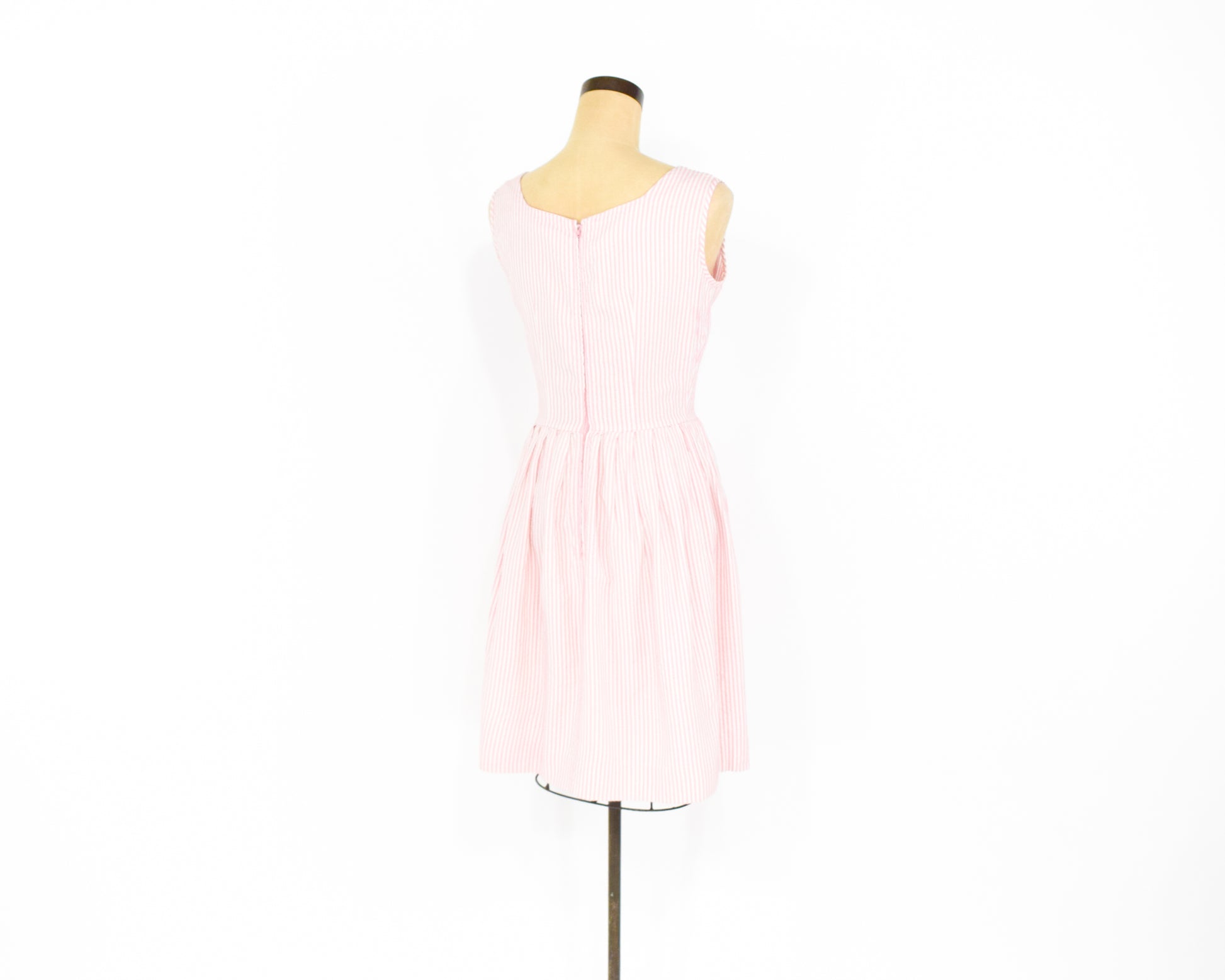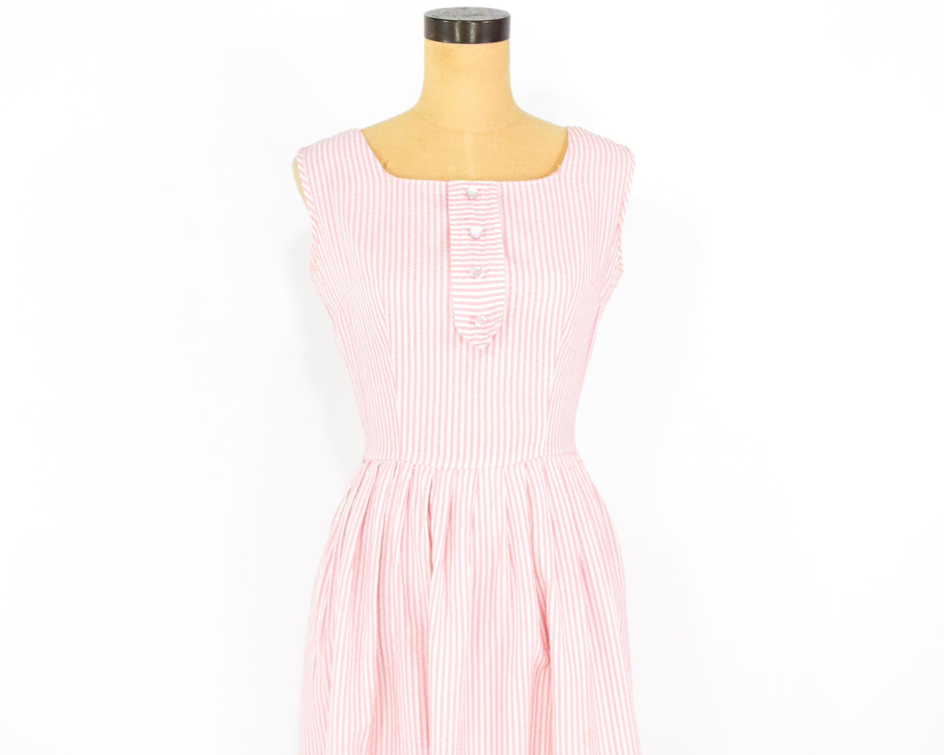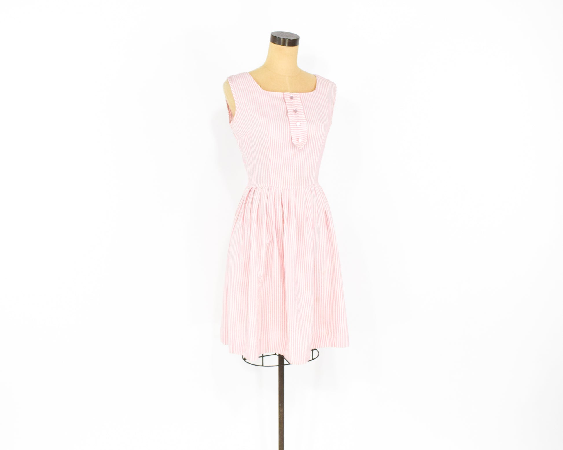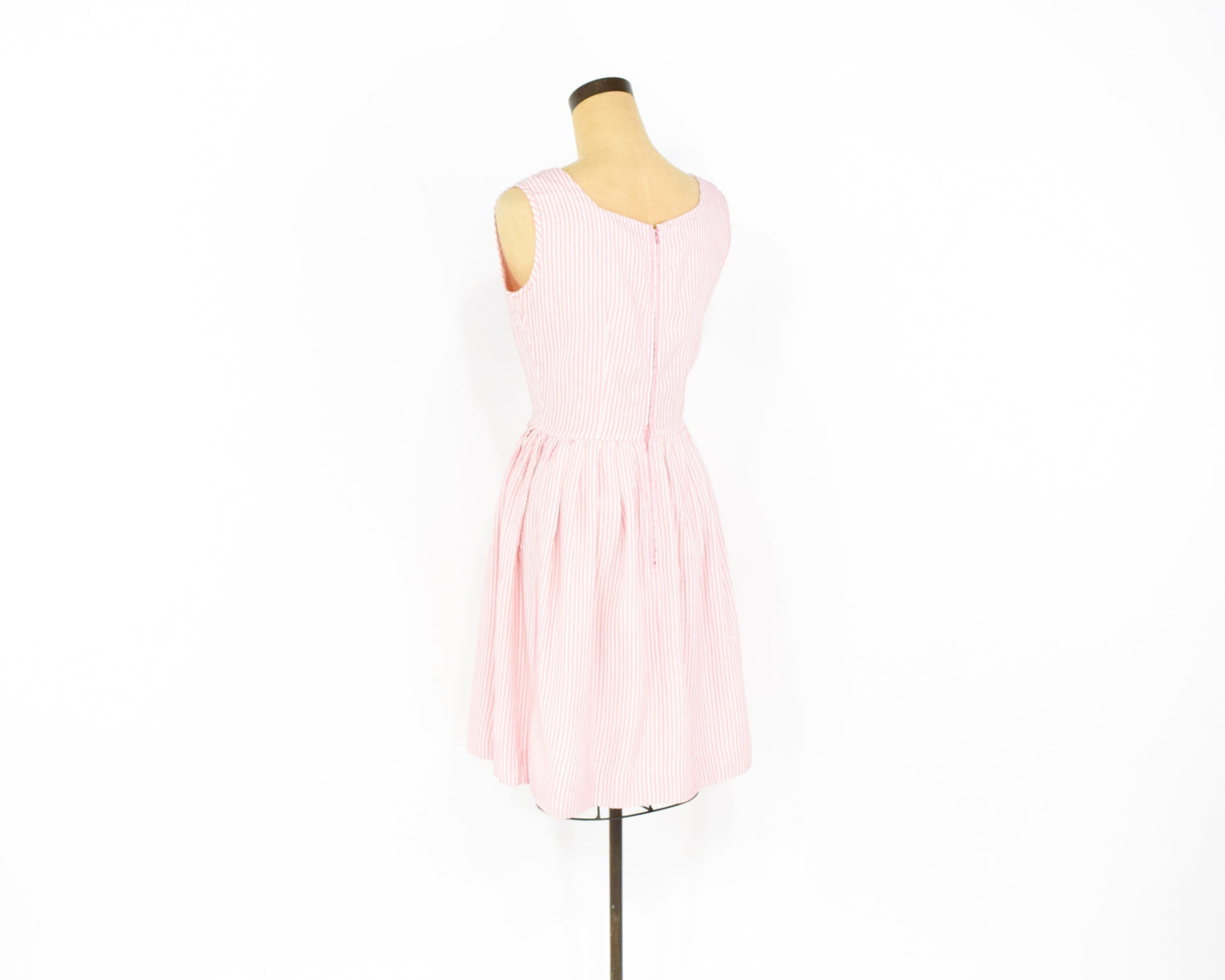 ~ Delightful pink and white seersucker striped cotton dress from the 1950s
