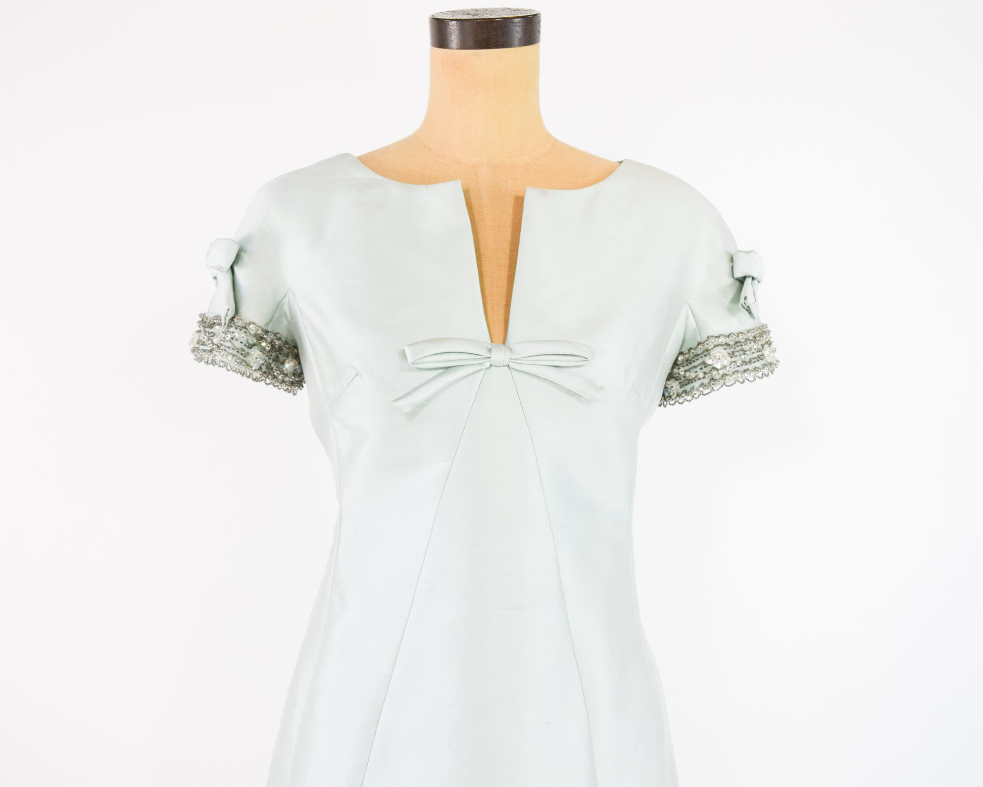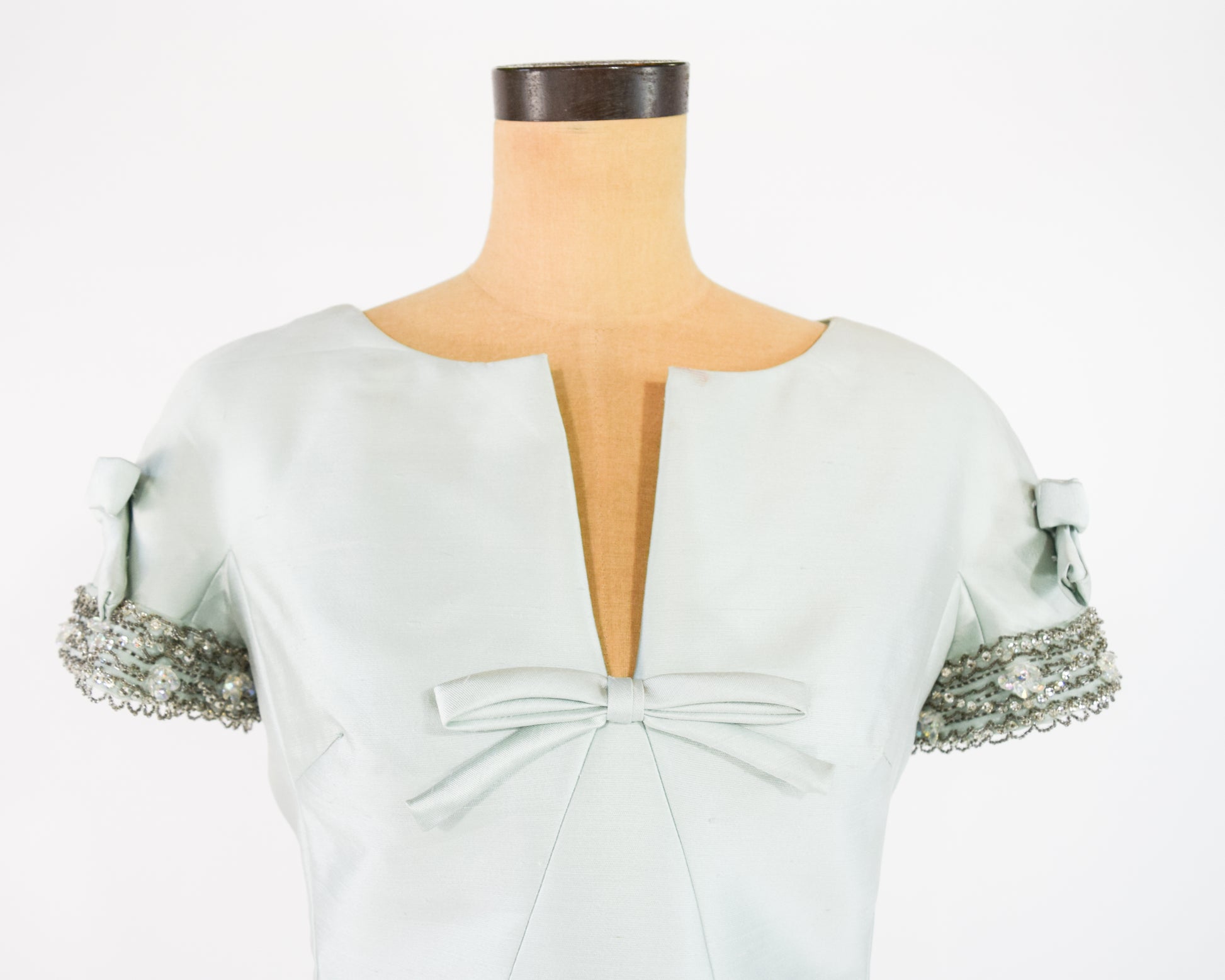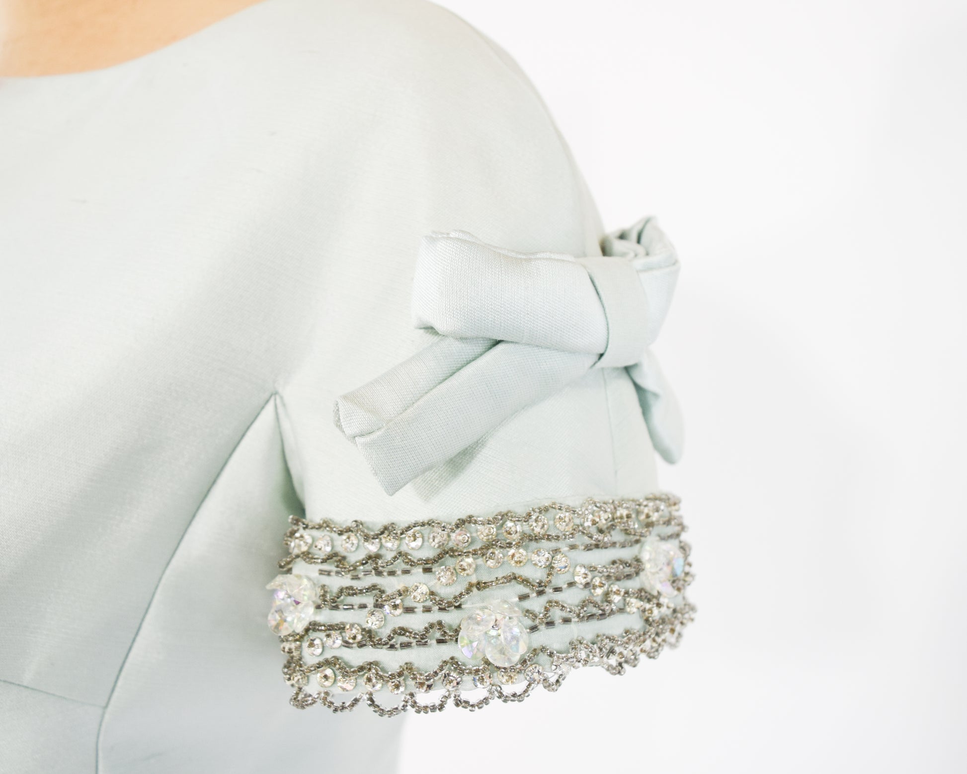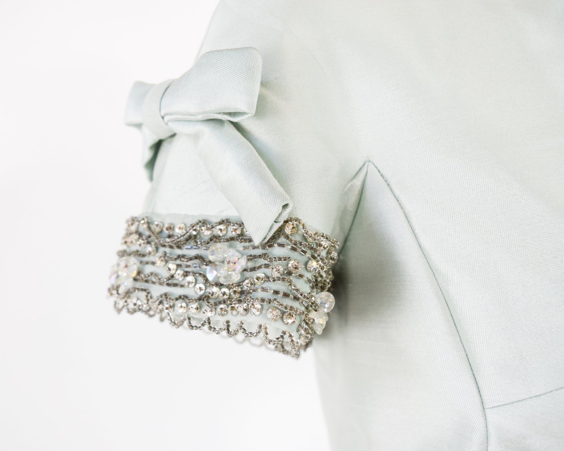 ~ Intricately beaded sleeves with flat bows