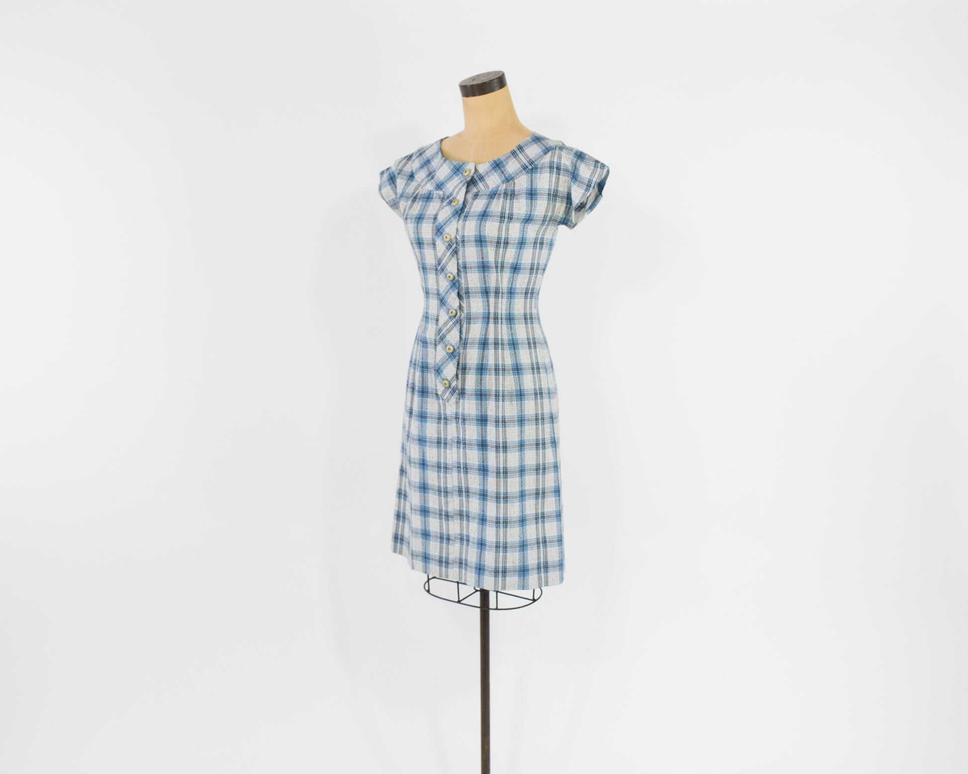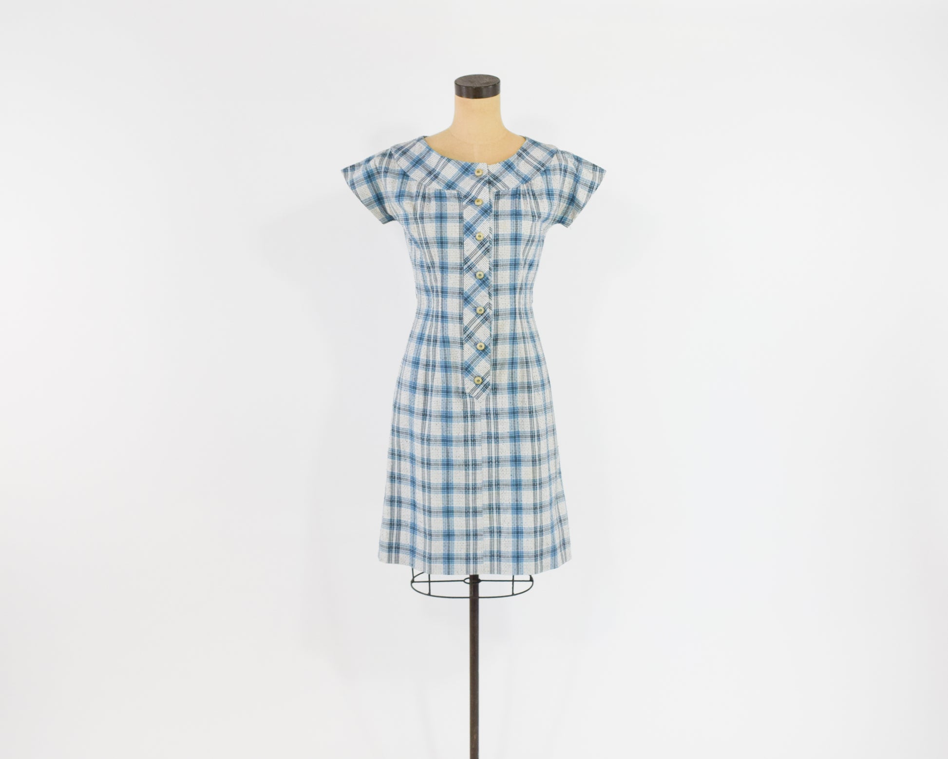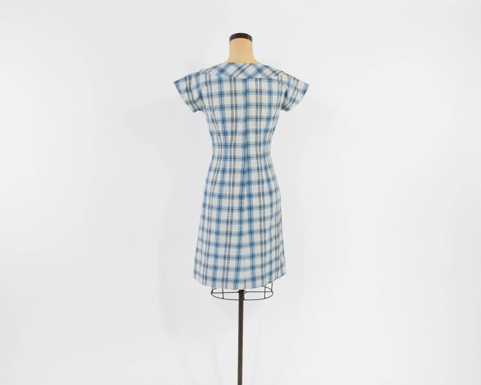 ~ Lovely little blue plaid cotton day dress from the 1960s