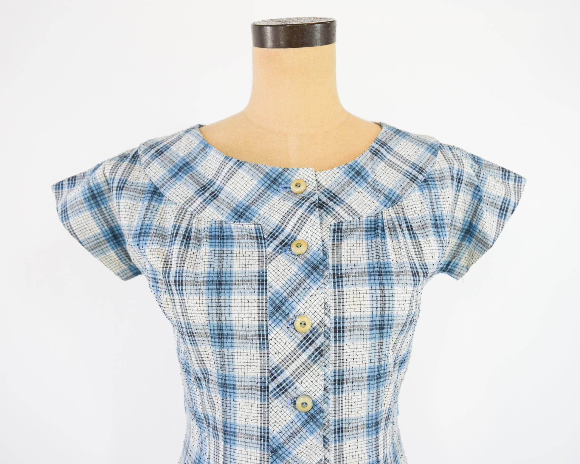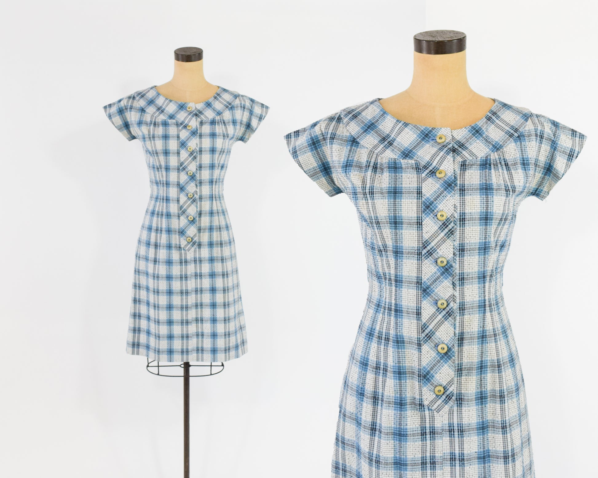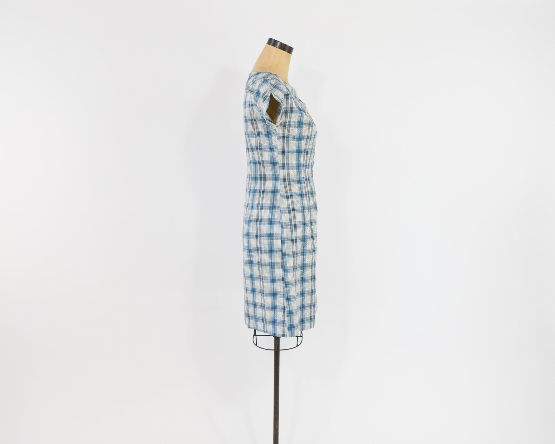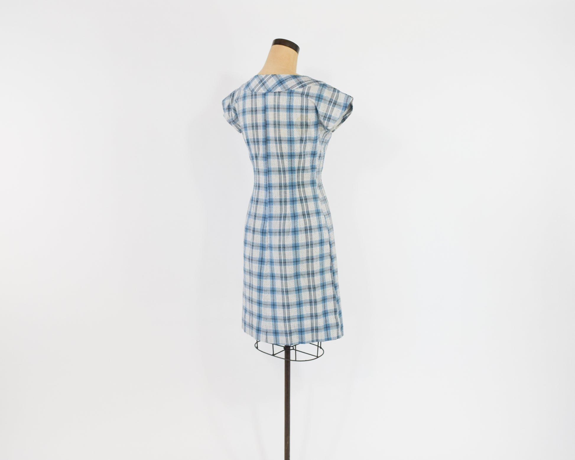 ~ Lovely little blue plaid cotton day dress from the 1960s