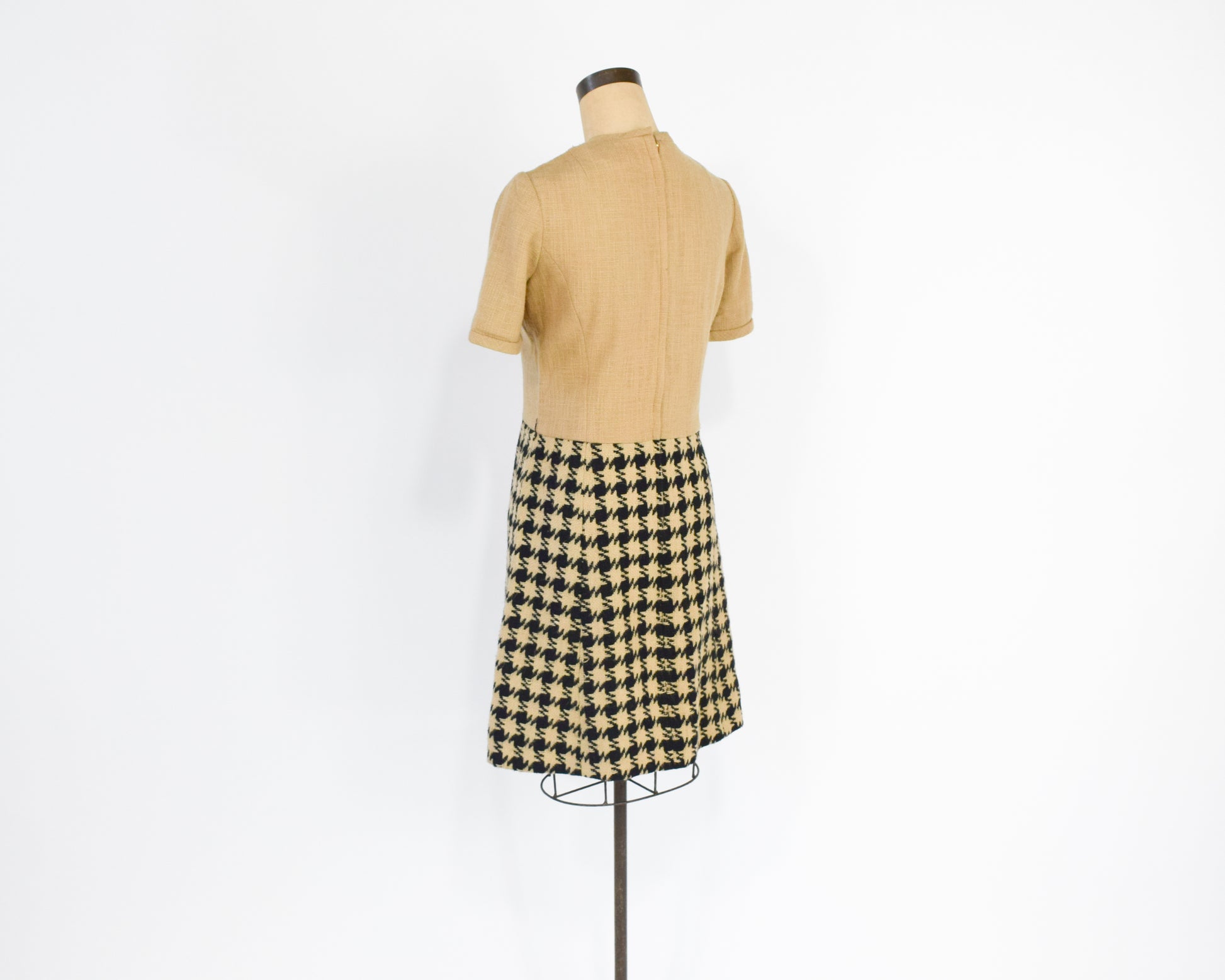 ~ Short sleeve dress with a tan top & houndstooth skirt