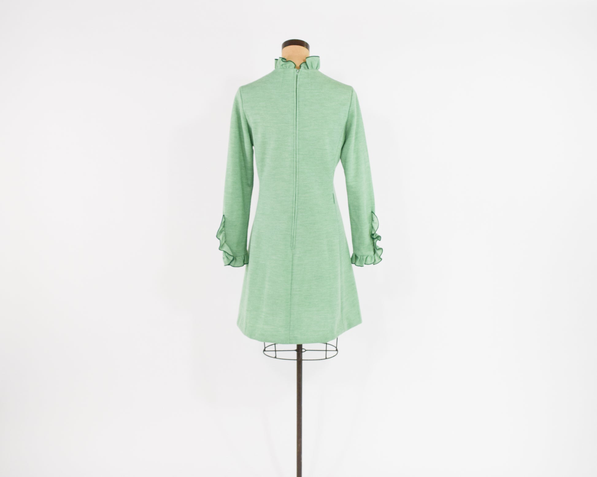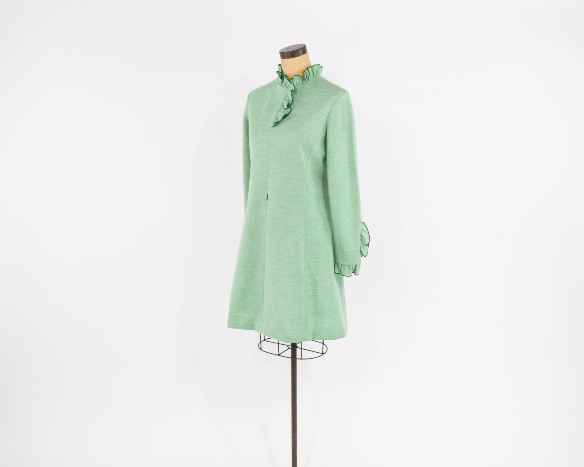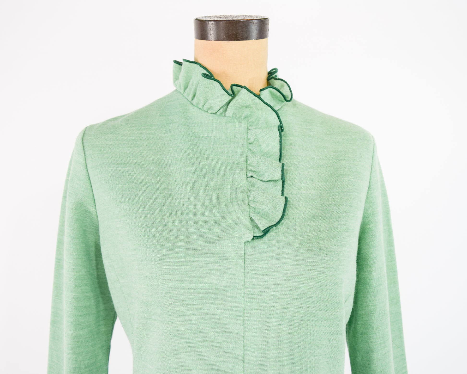 1960s Mint Wool Dress with Ruffle Collar Medium