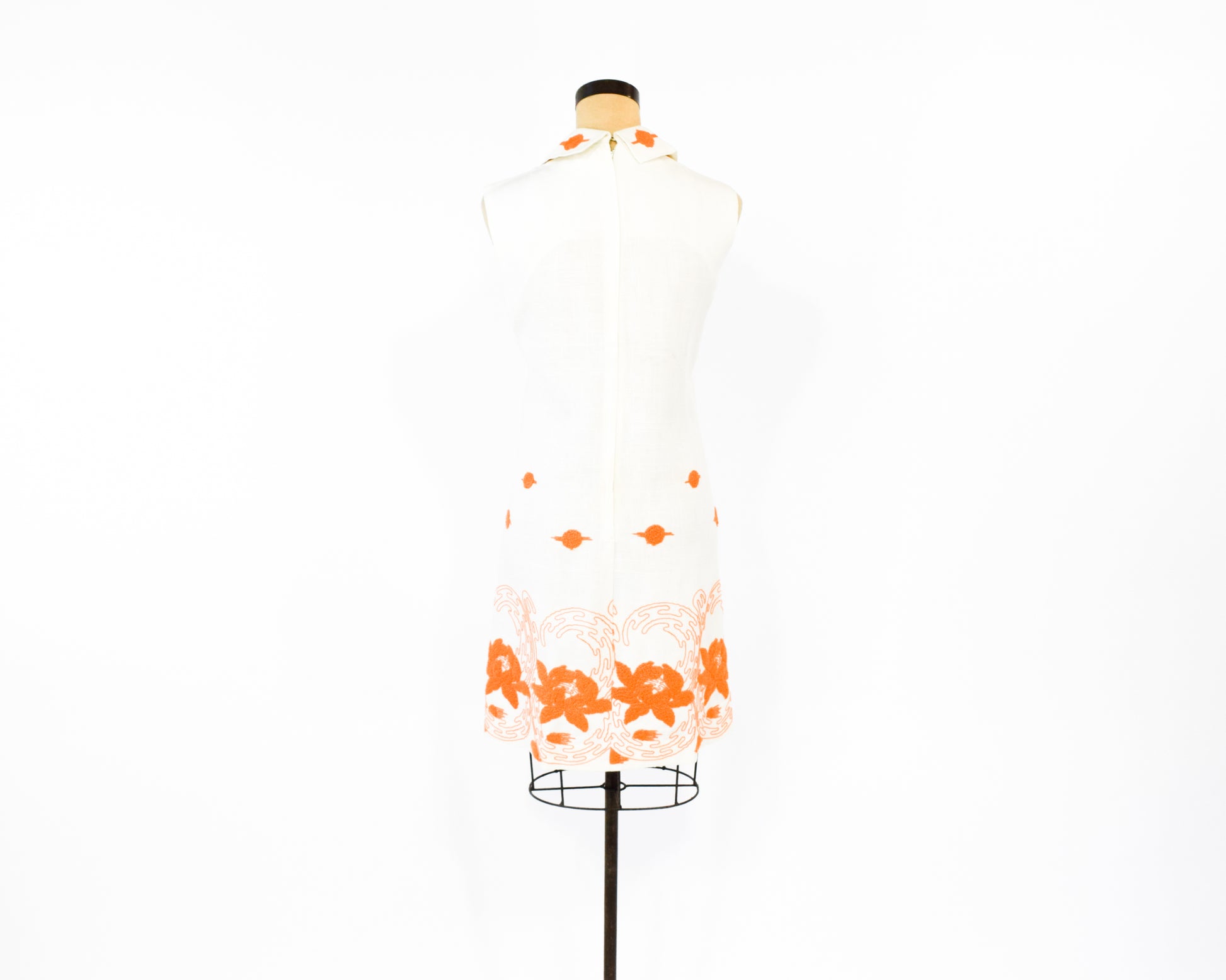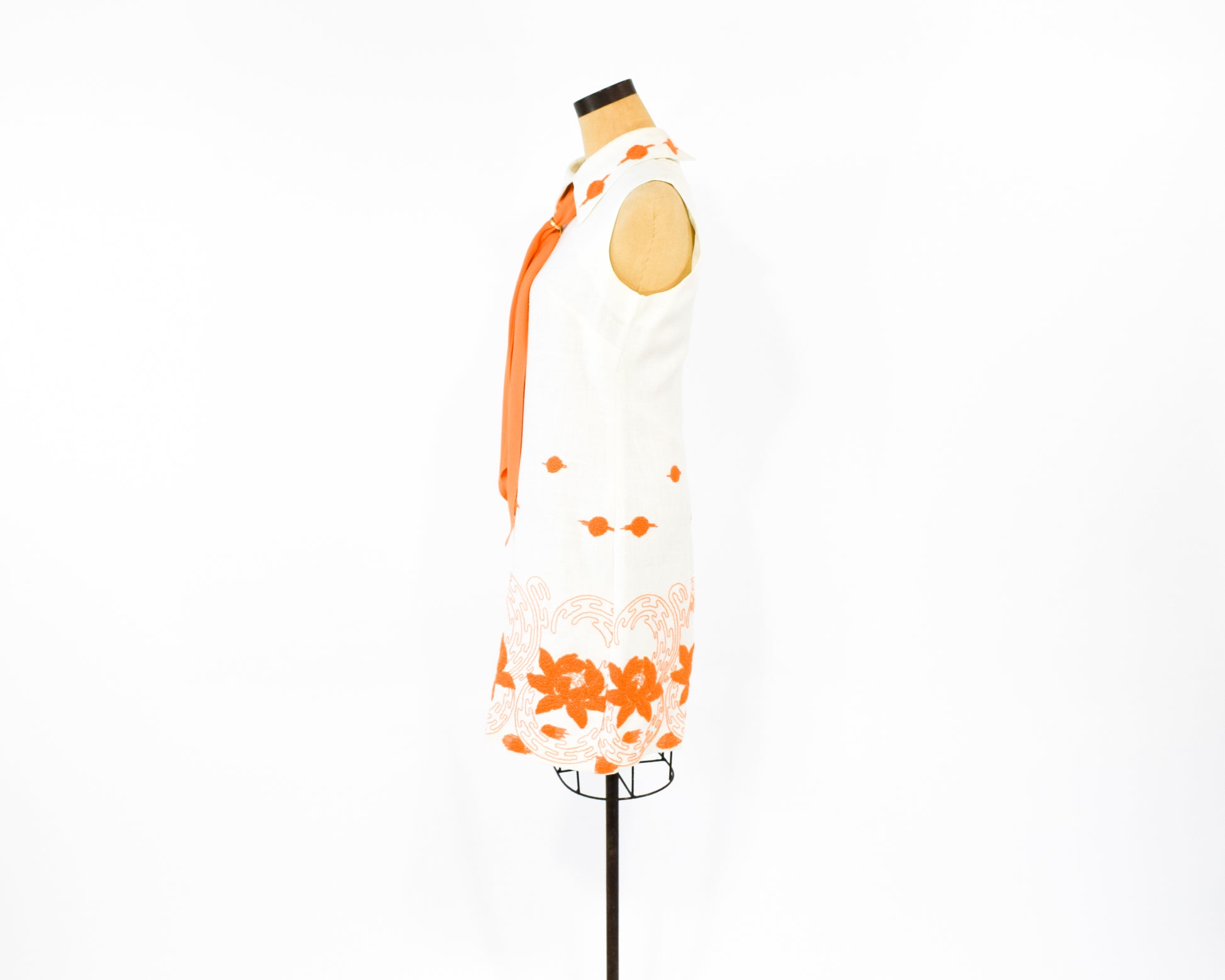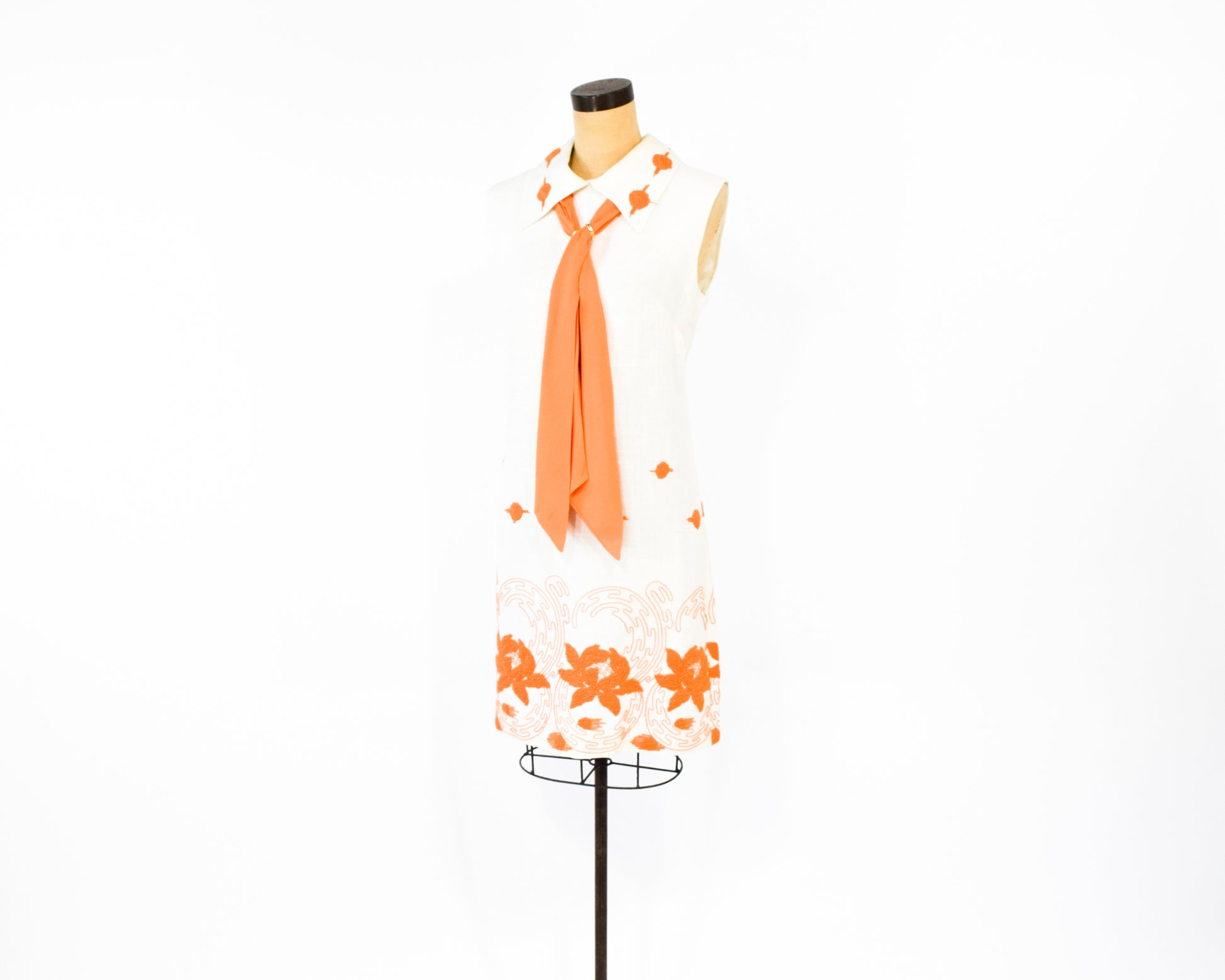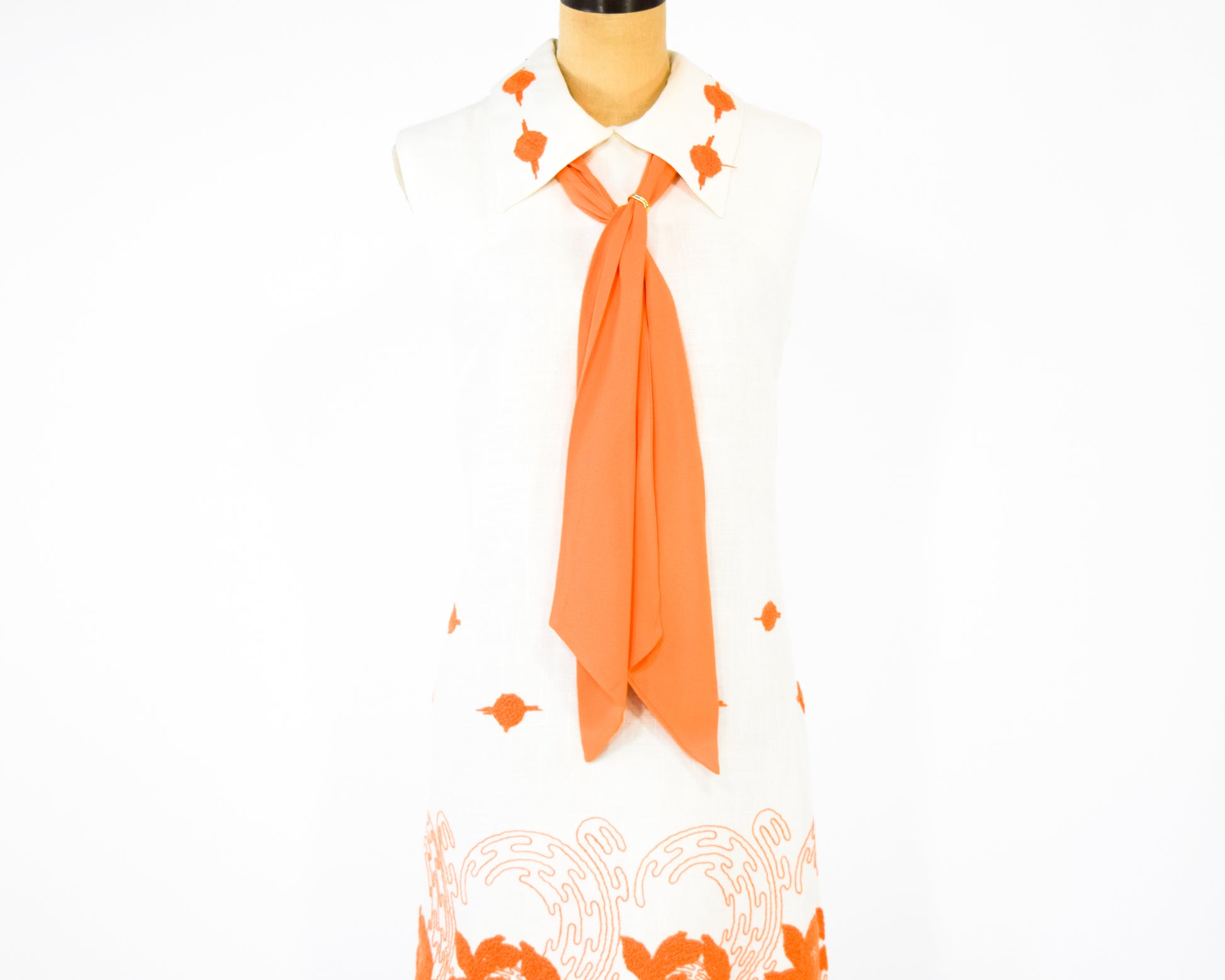 1960s Orange & White Embroidered Dress