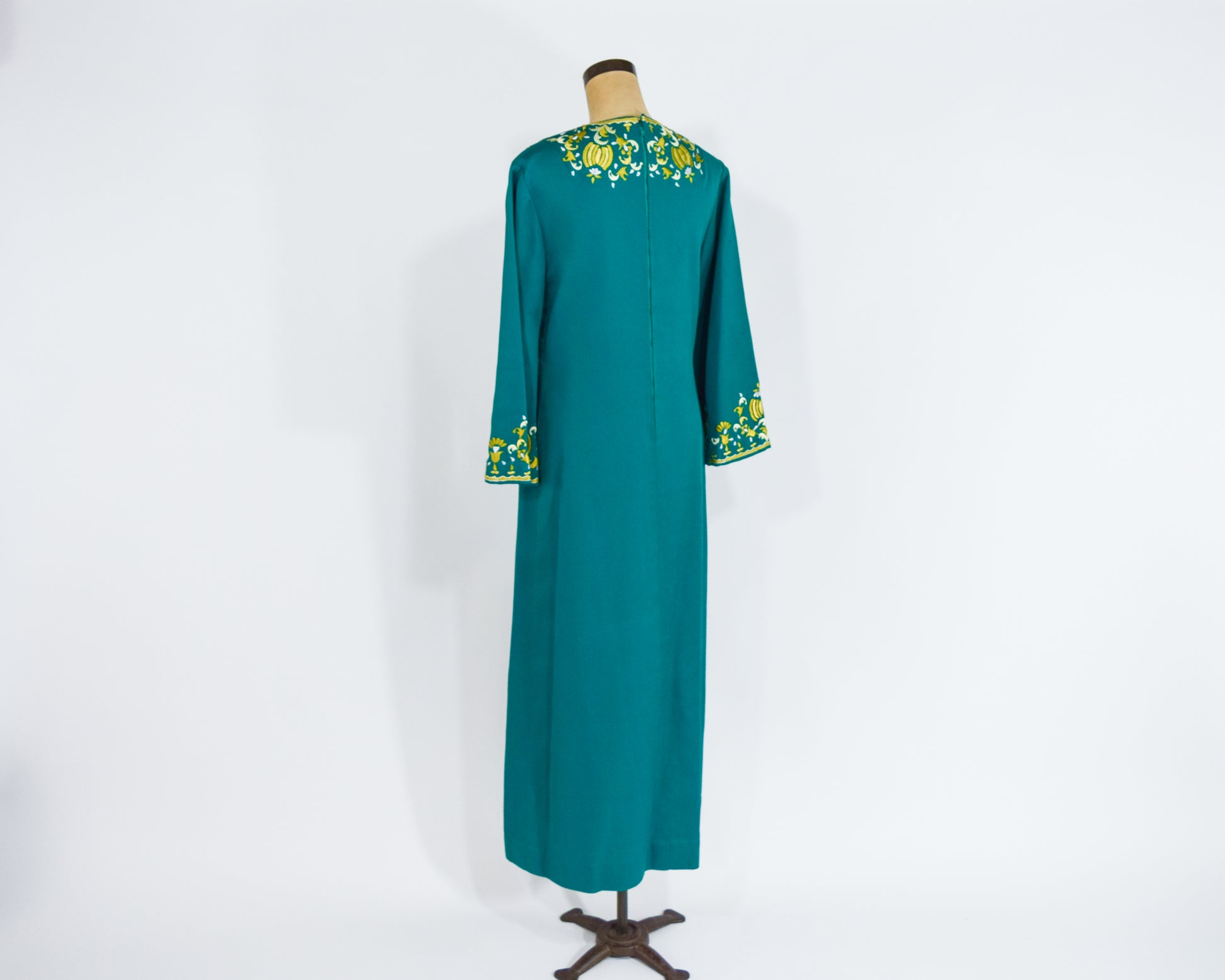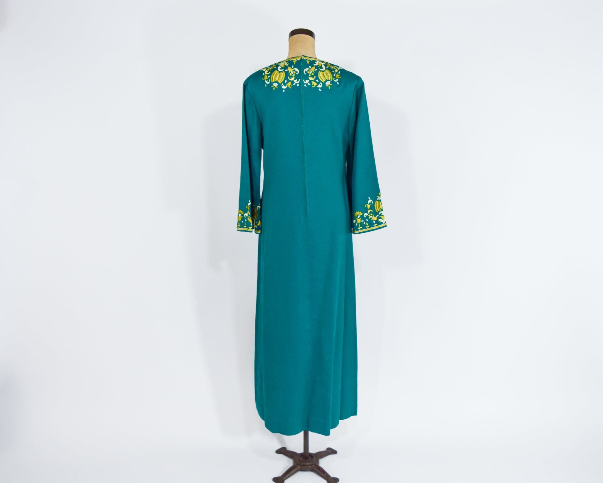 1960s Green Embroidered Caftan Dress, Medium