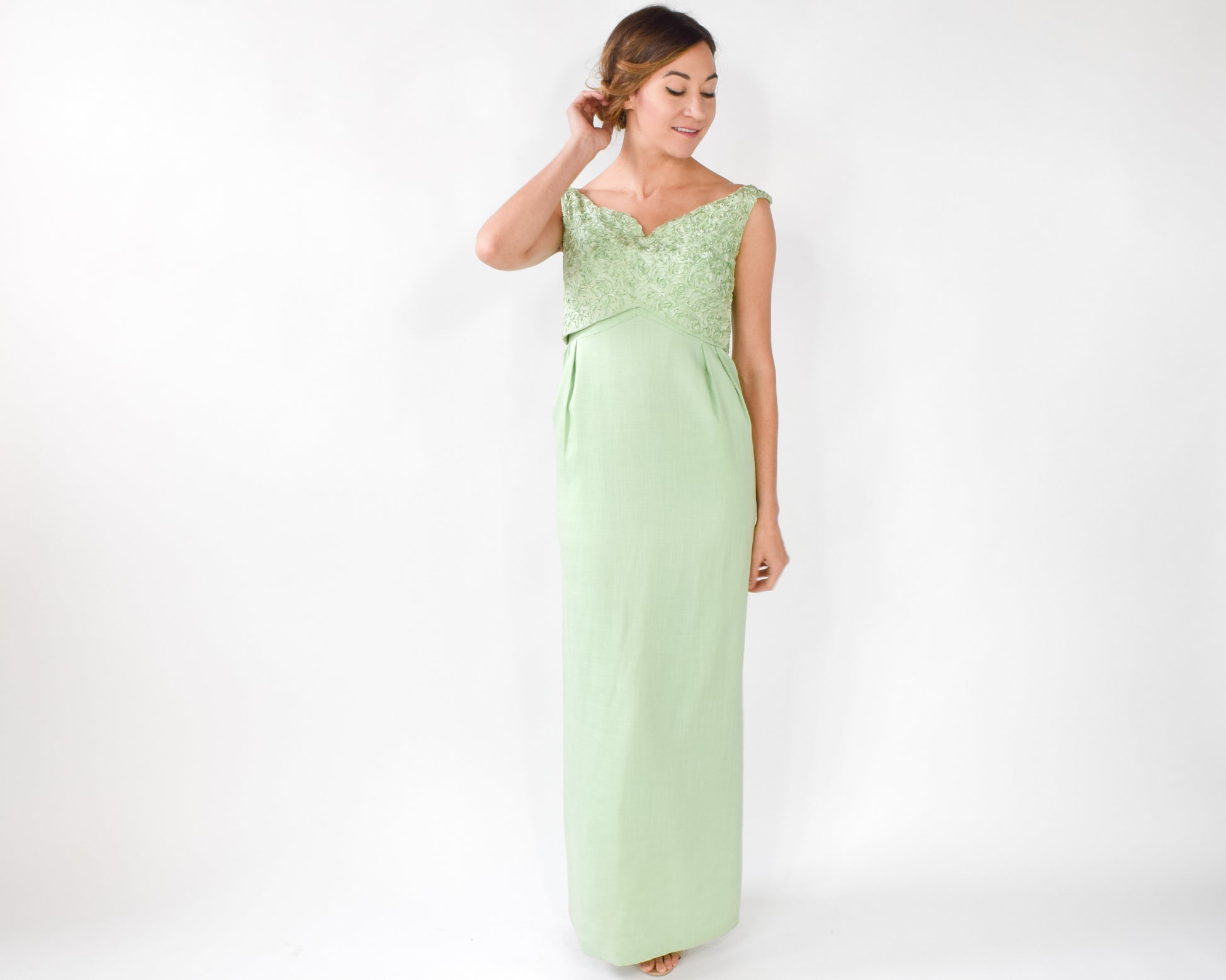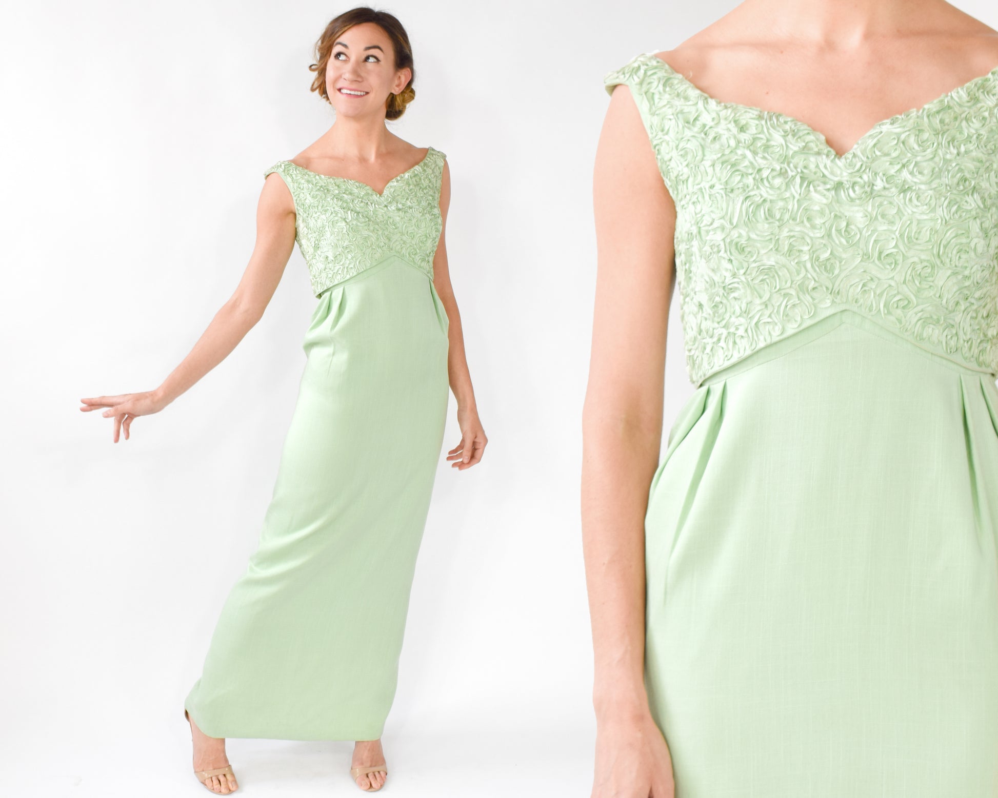 1960s Mint Green Lace Dress, Small