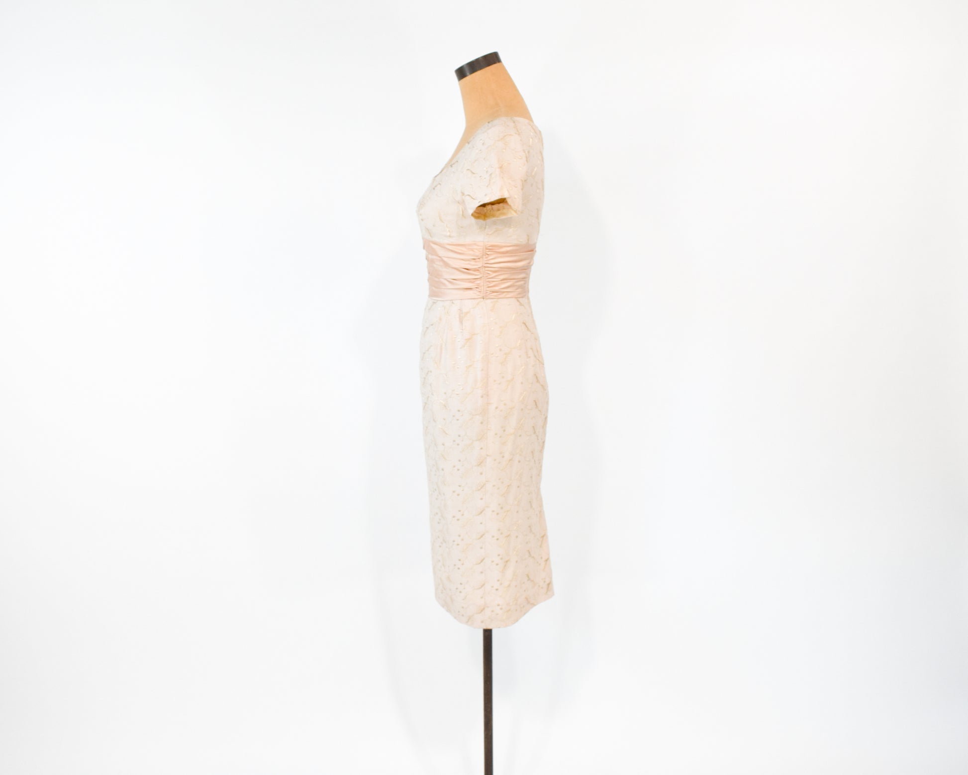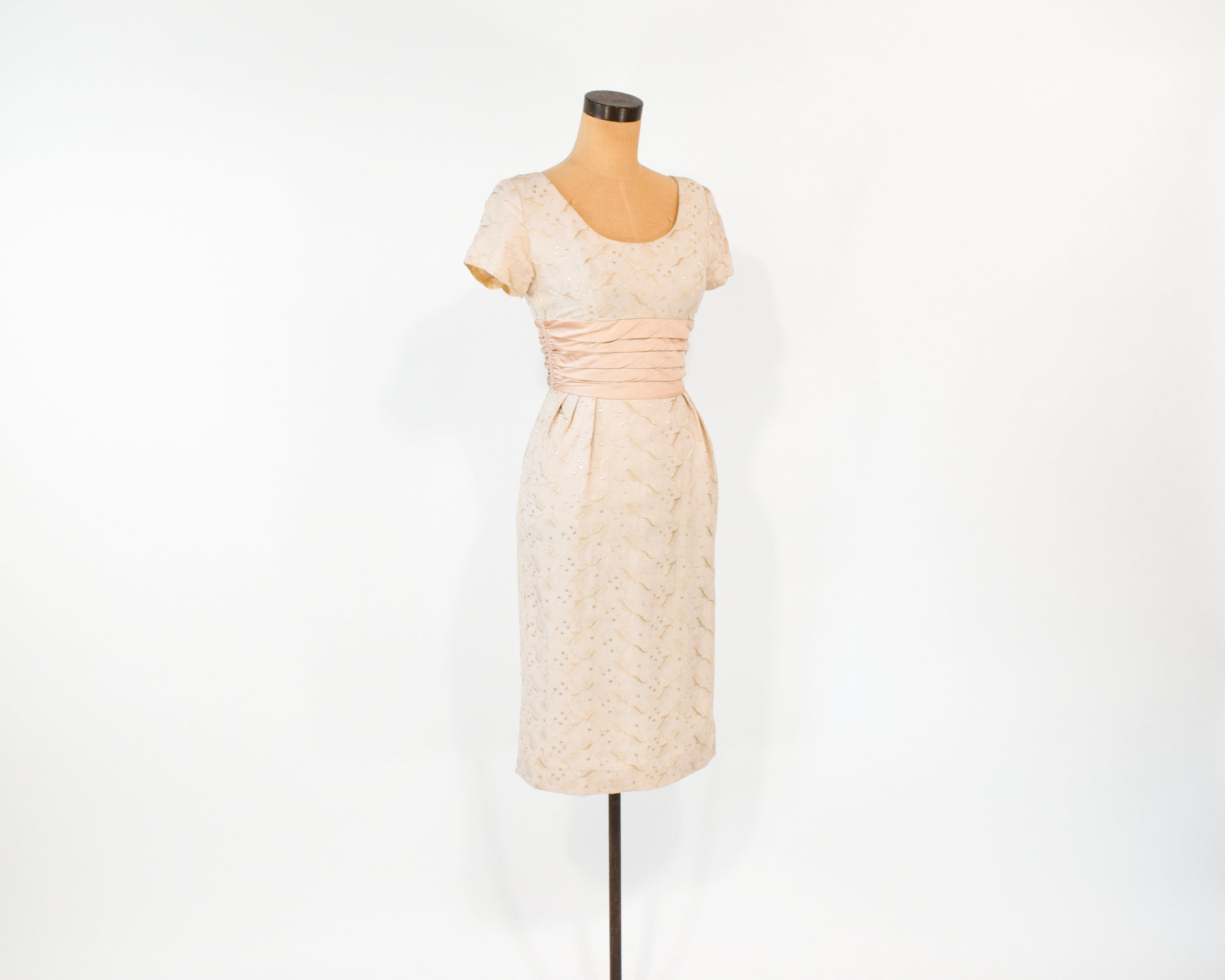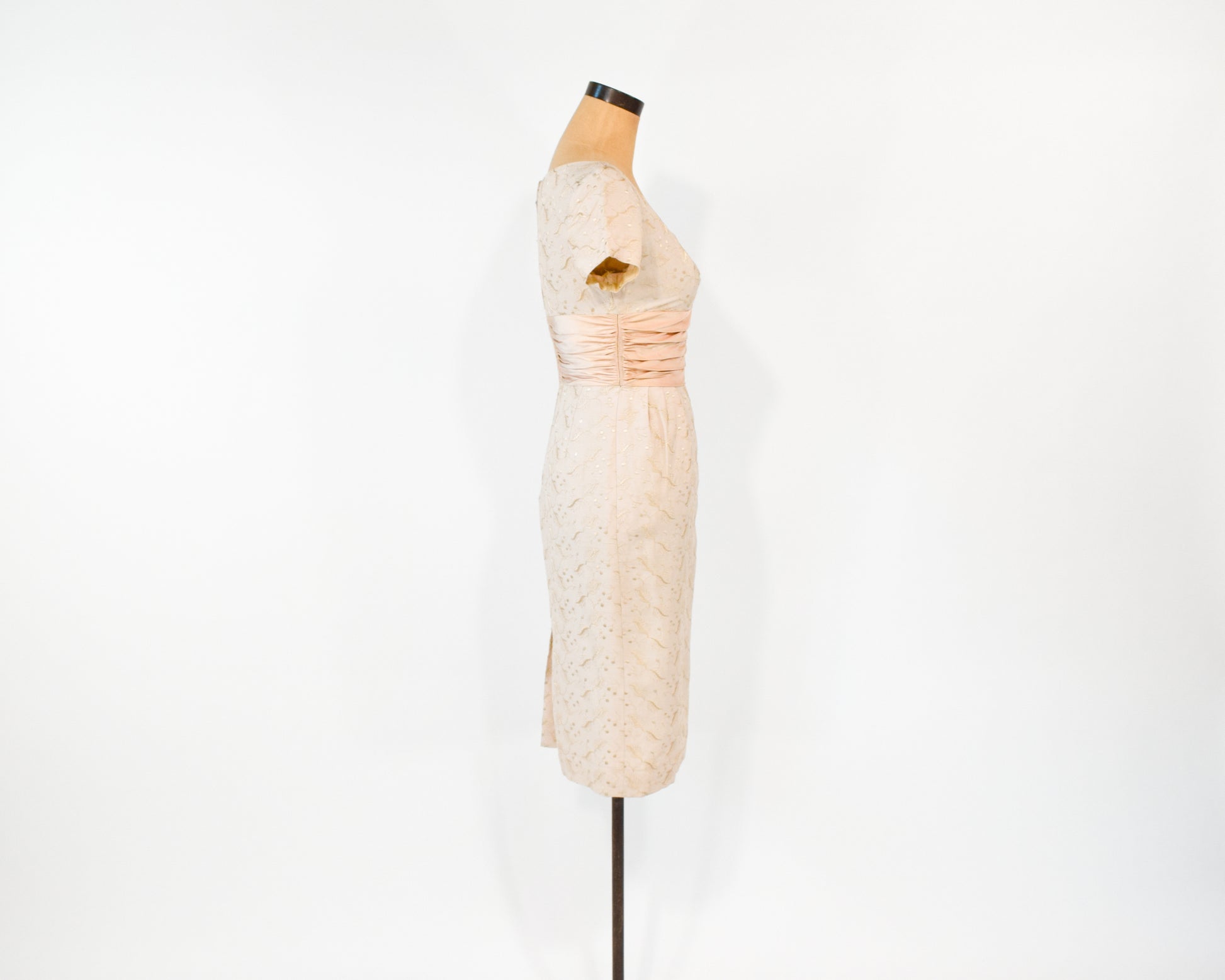 1950s Beige Lace Wiggle Dress, Extra Small