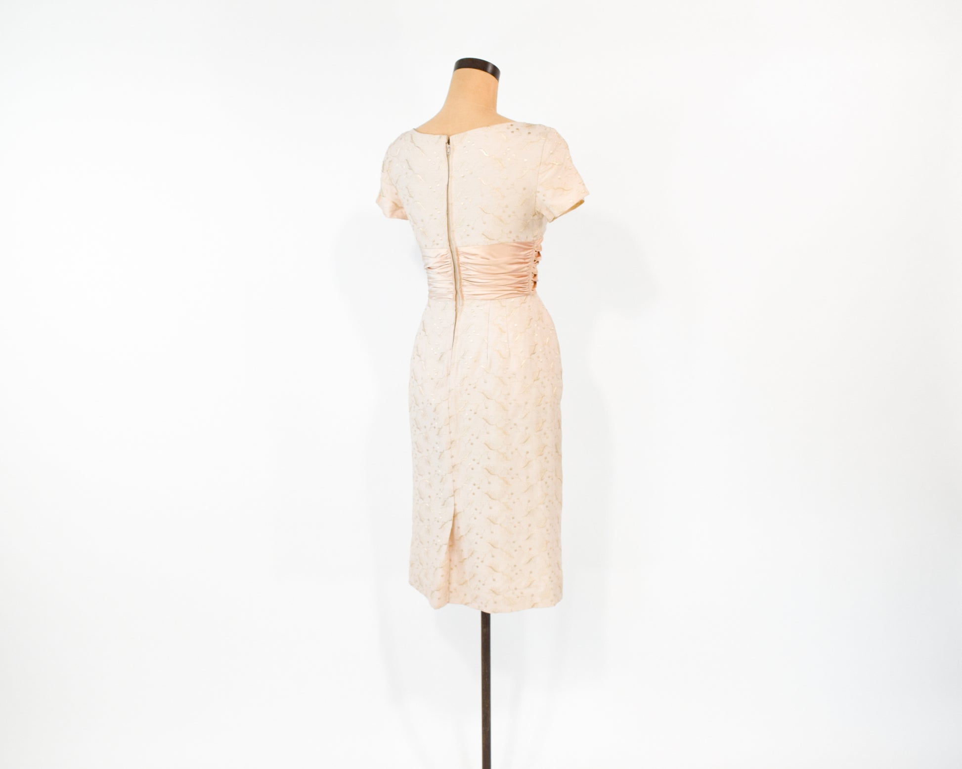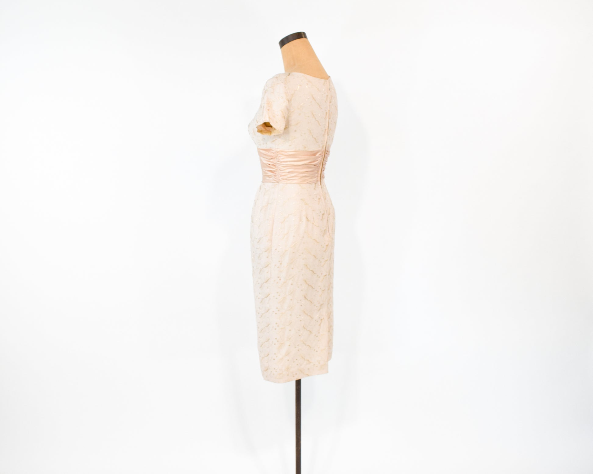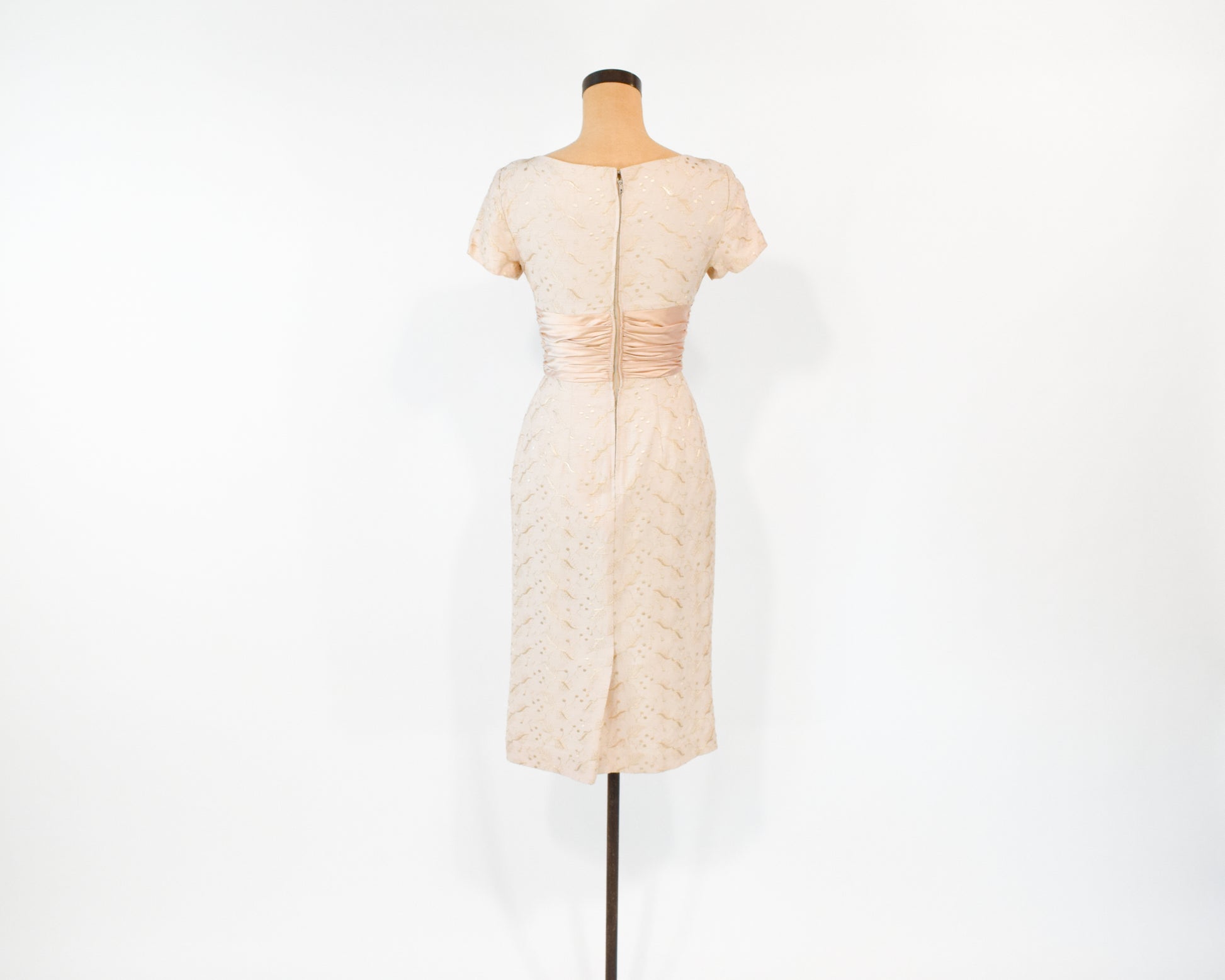 1950s Beige Lace Wiggle Dress, Extra Small