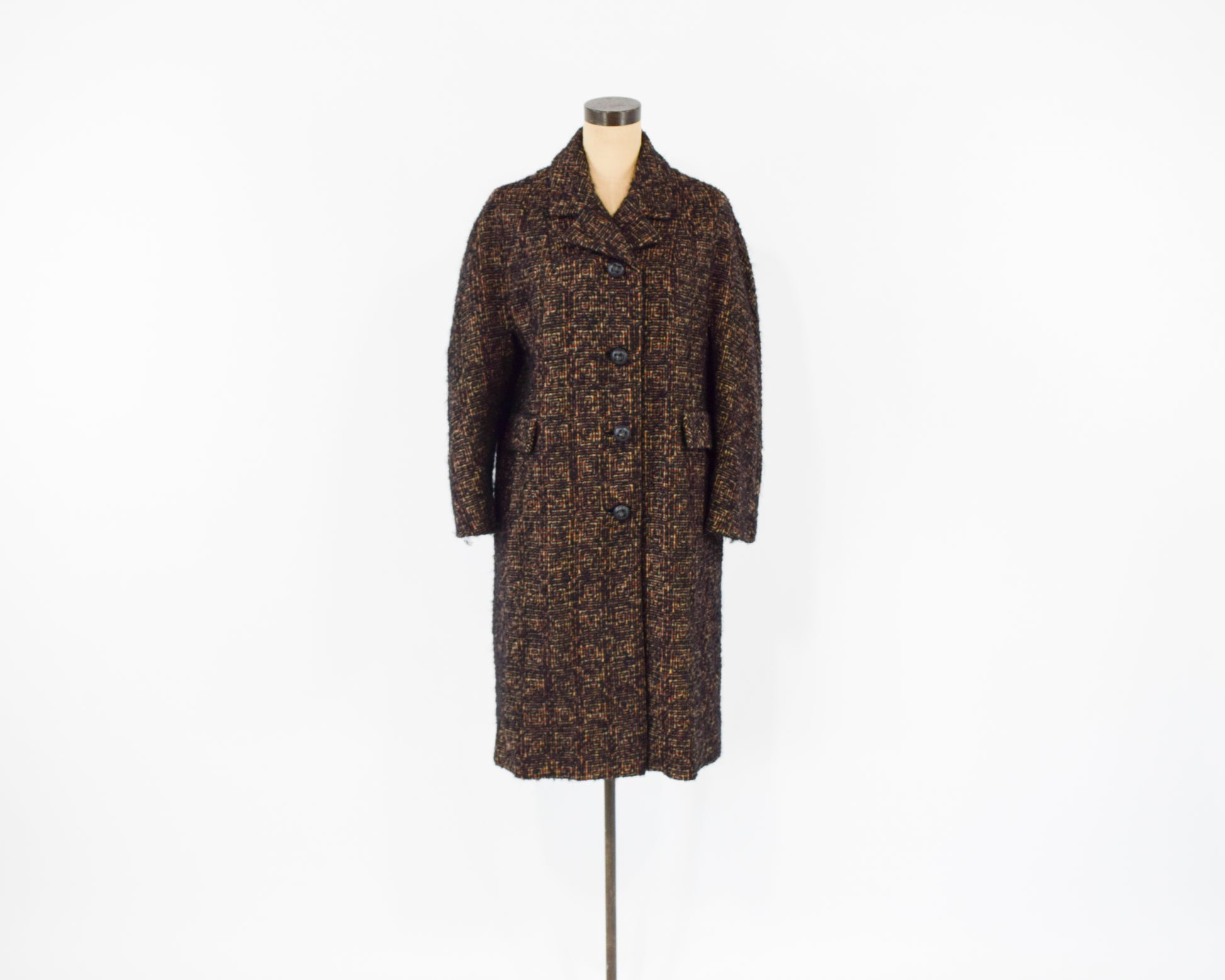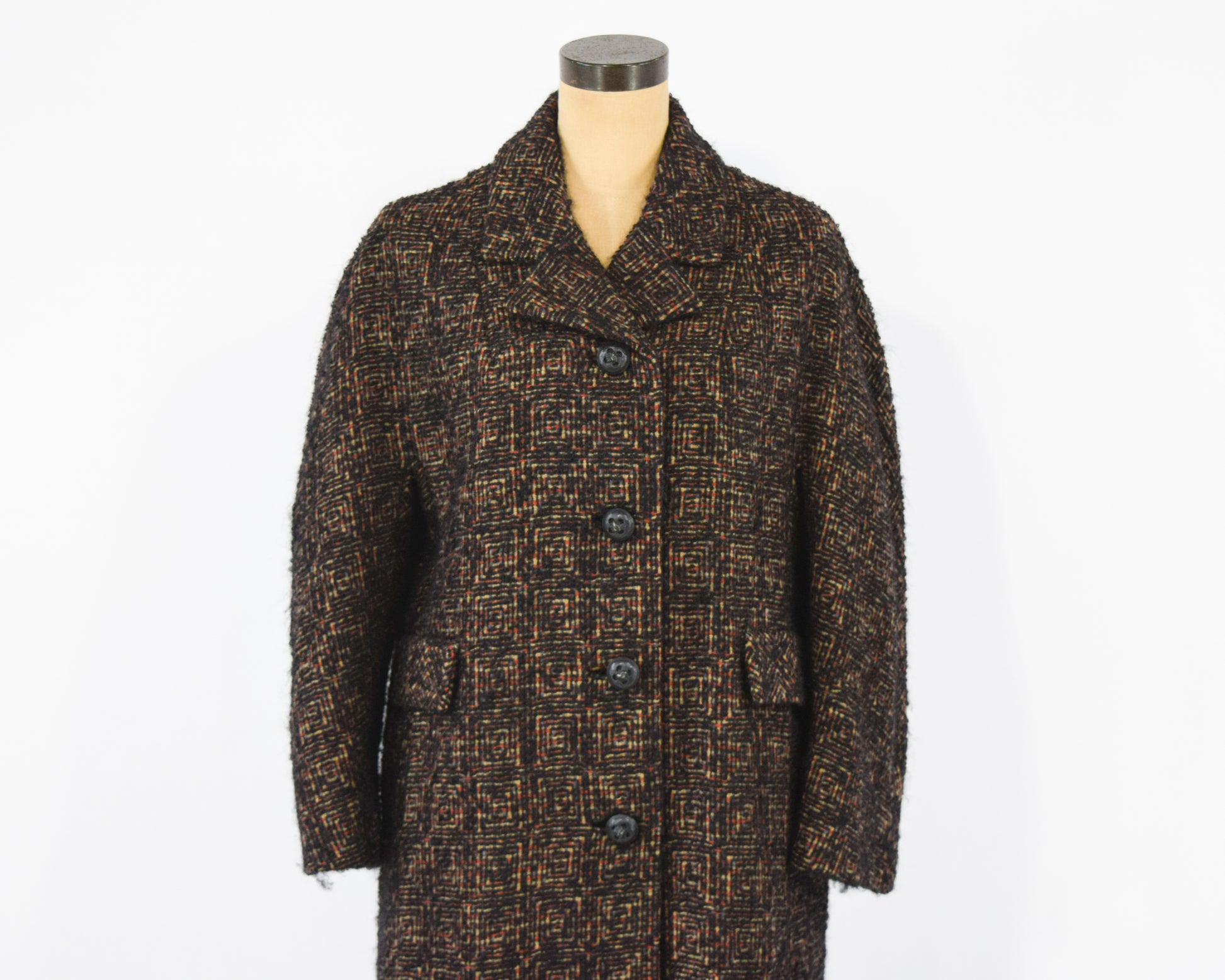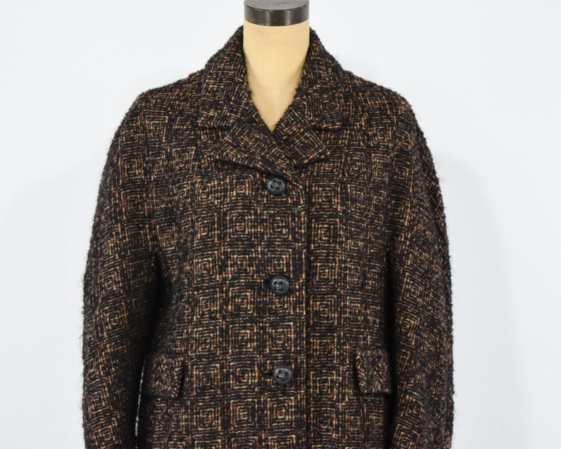 ~ Wonderful black and brown tweed wool winter coat from the 1960s