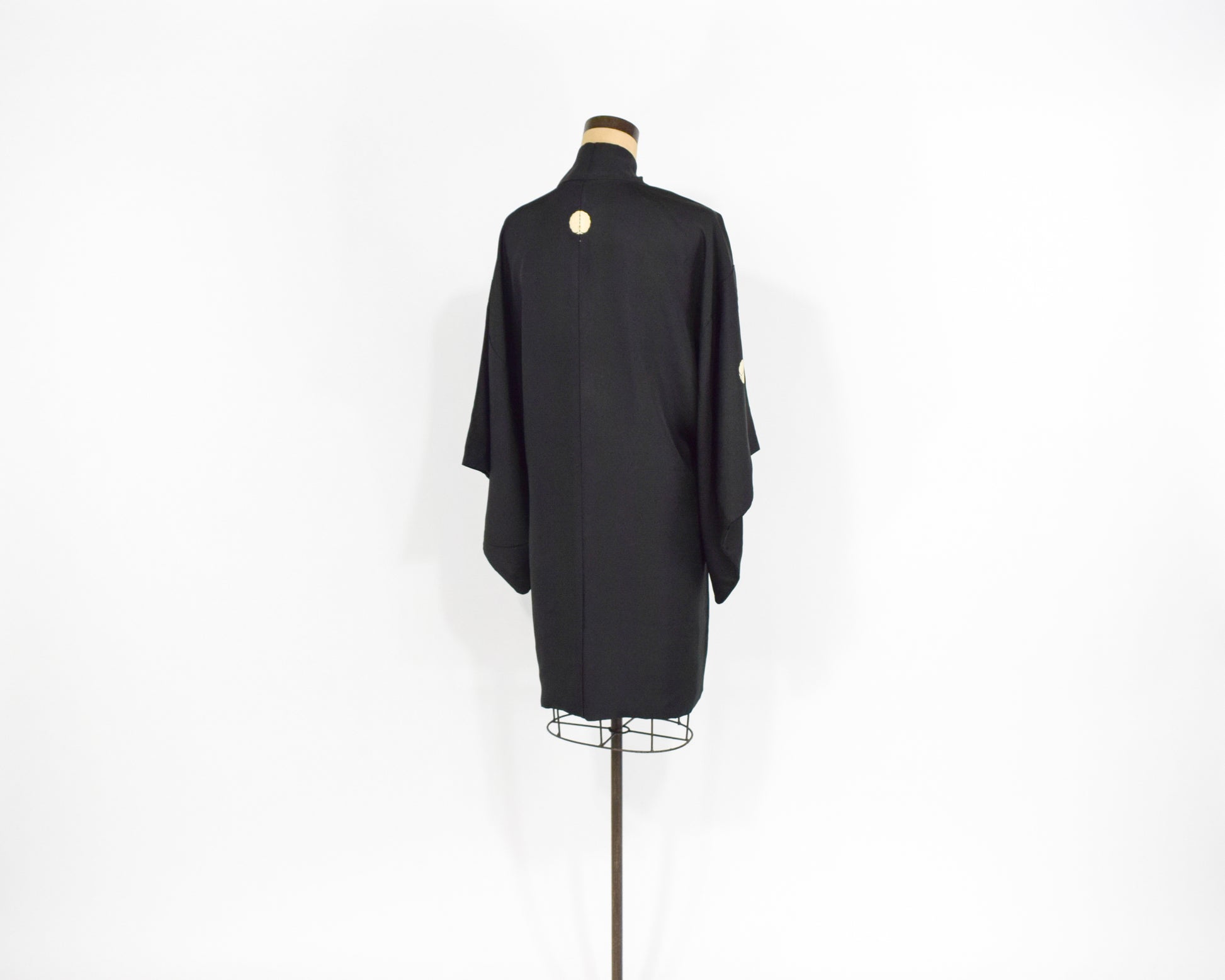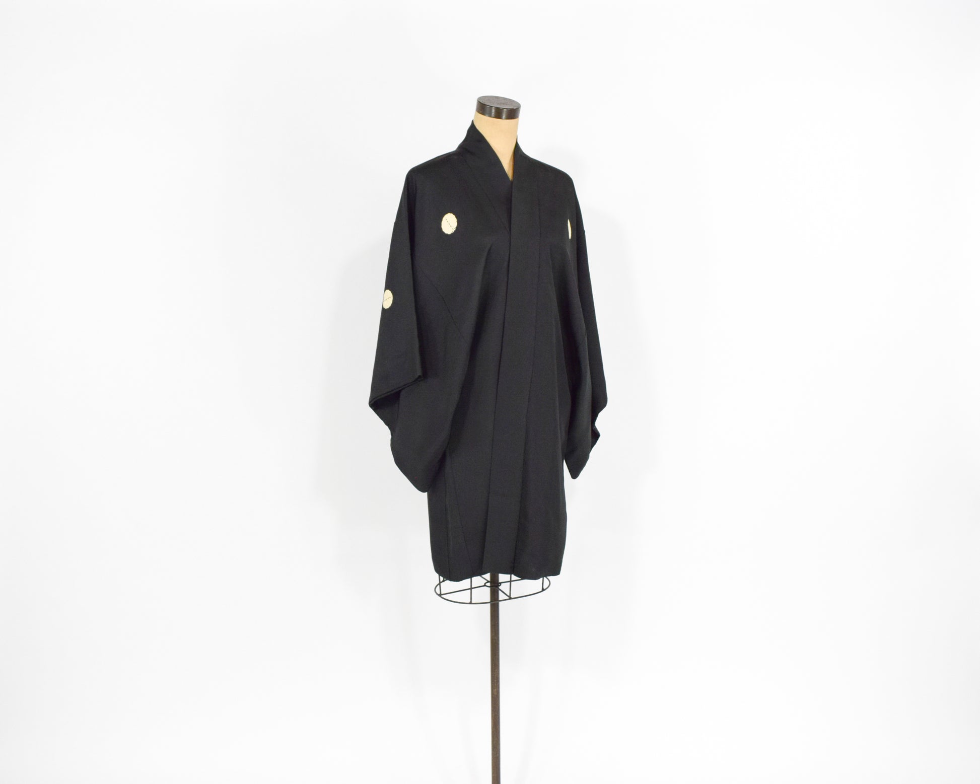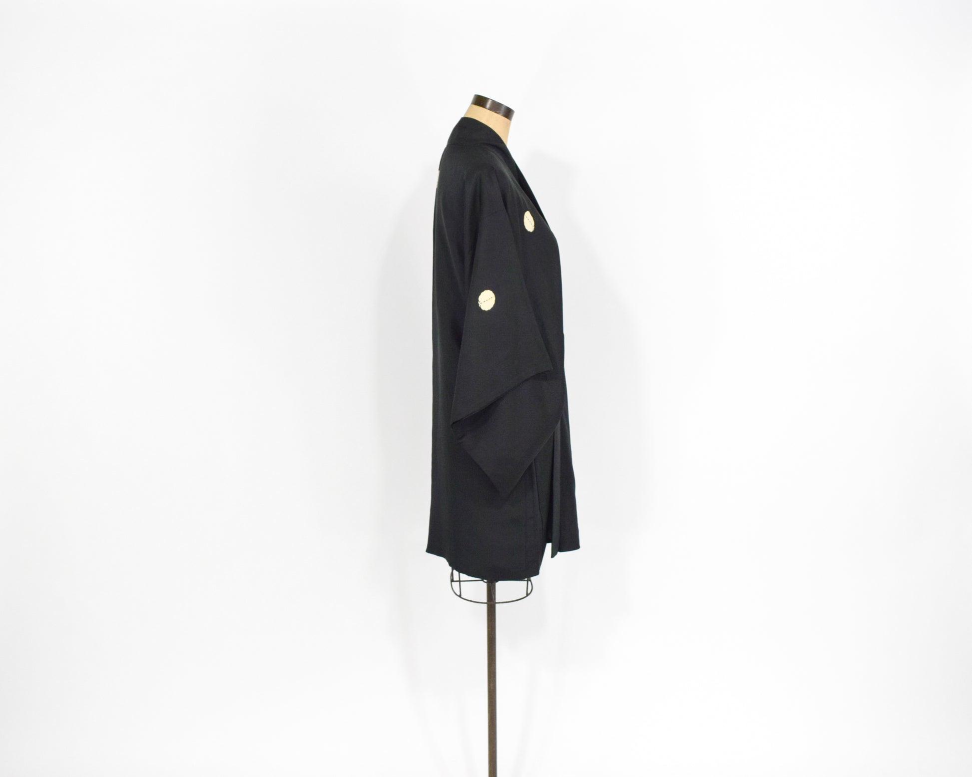 Vintage Haori Kimono, Black Bird Print Silk Kimono