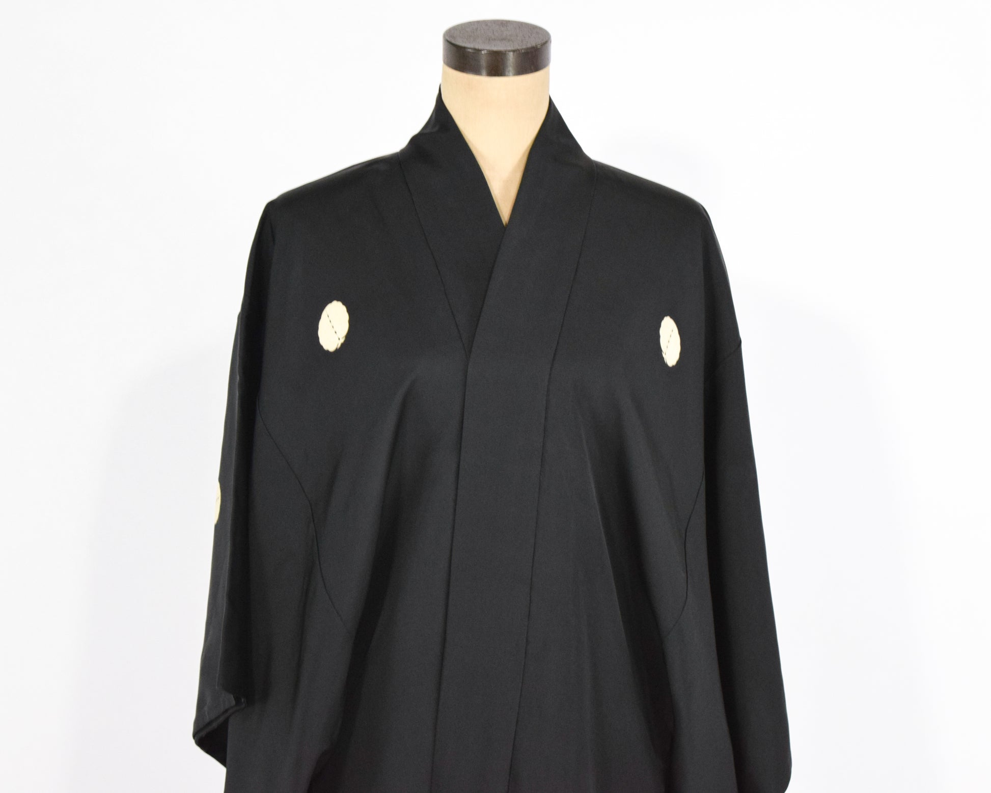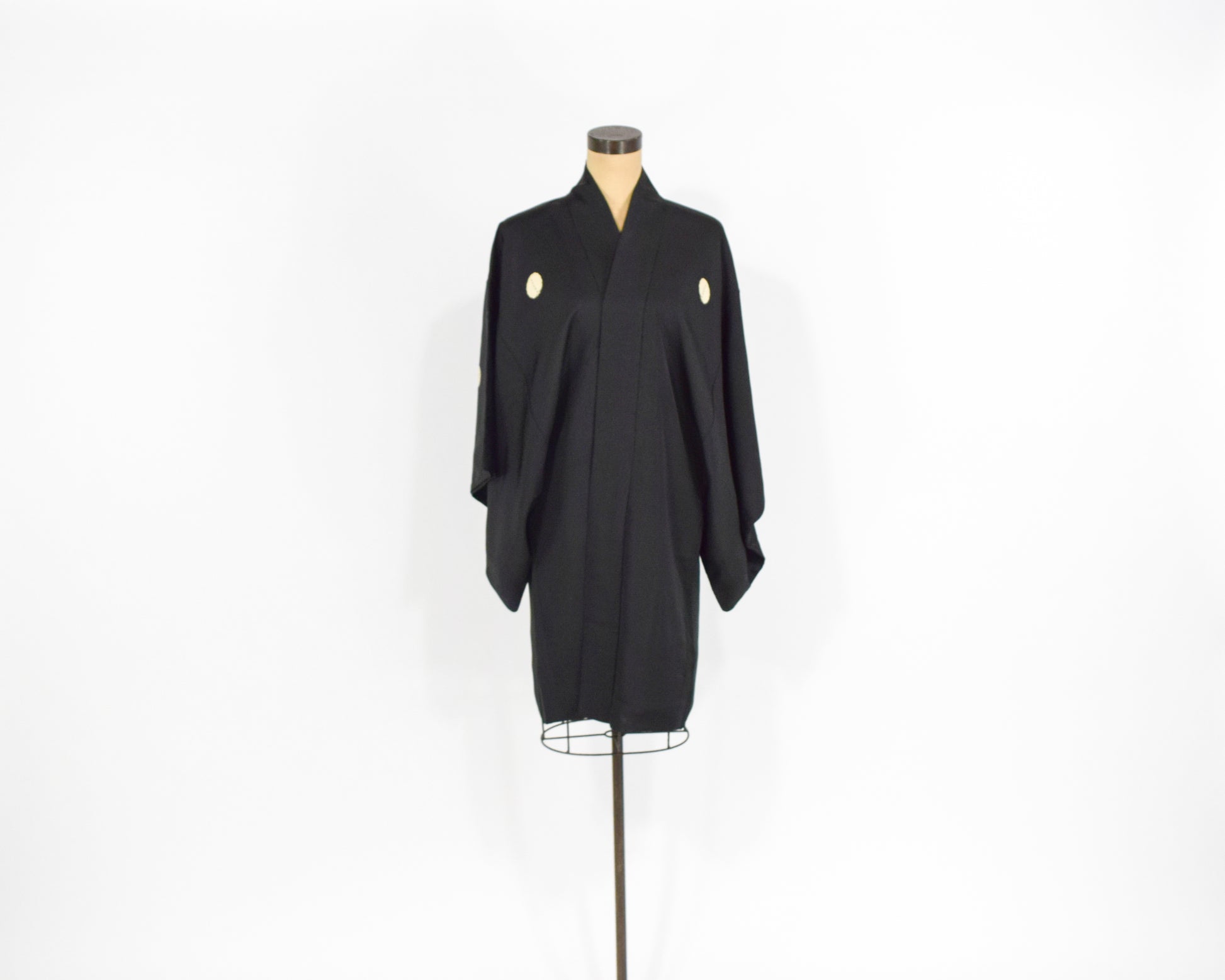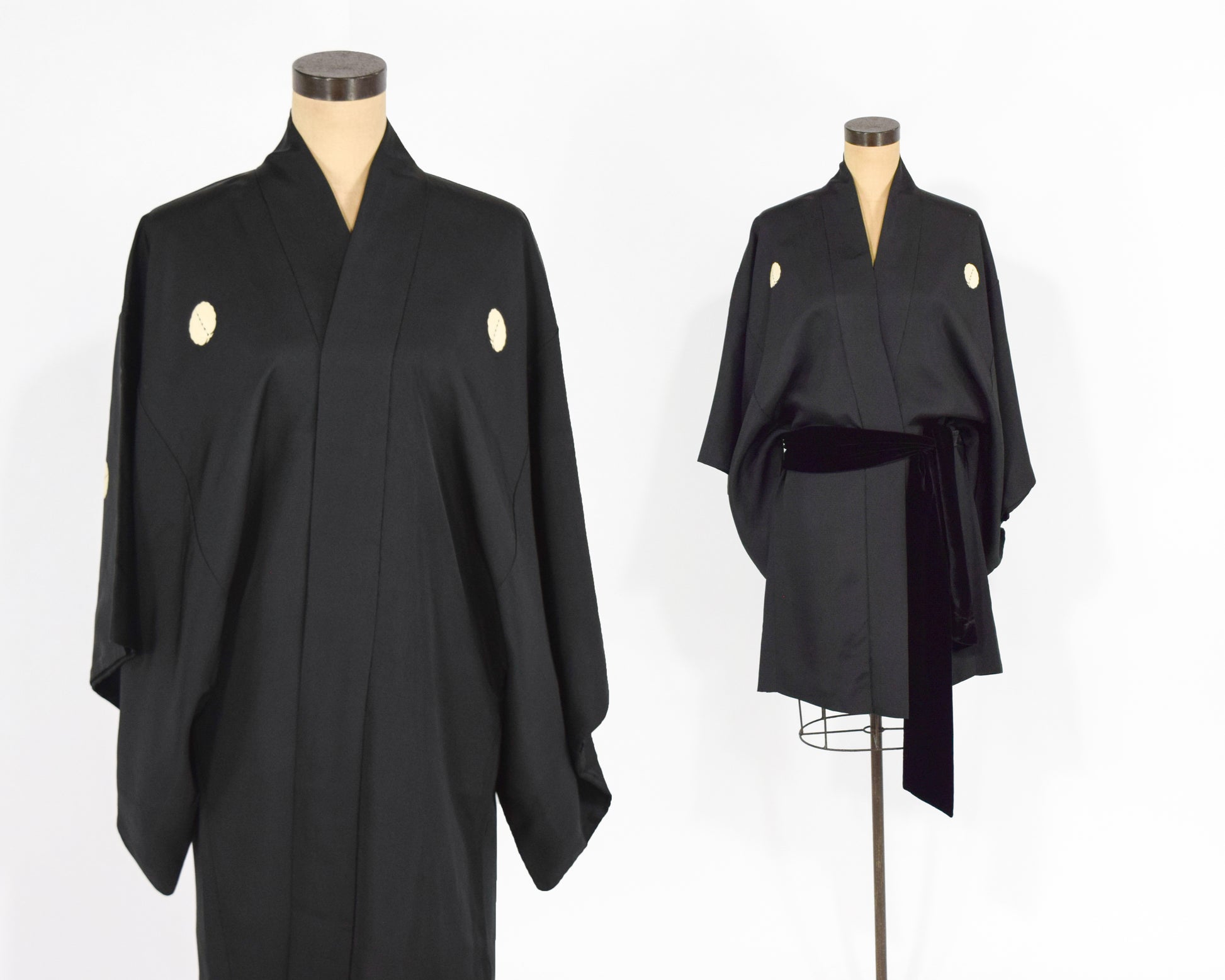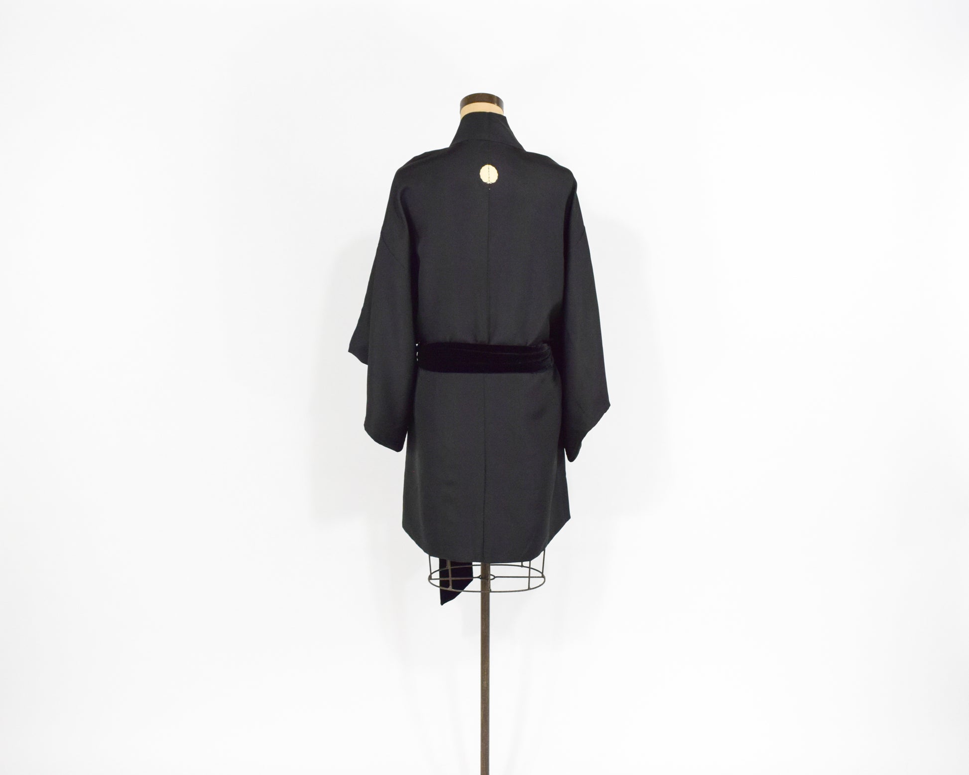Vintage Haori Kimono, Black Bird Print Silk Kimono